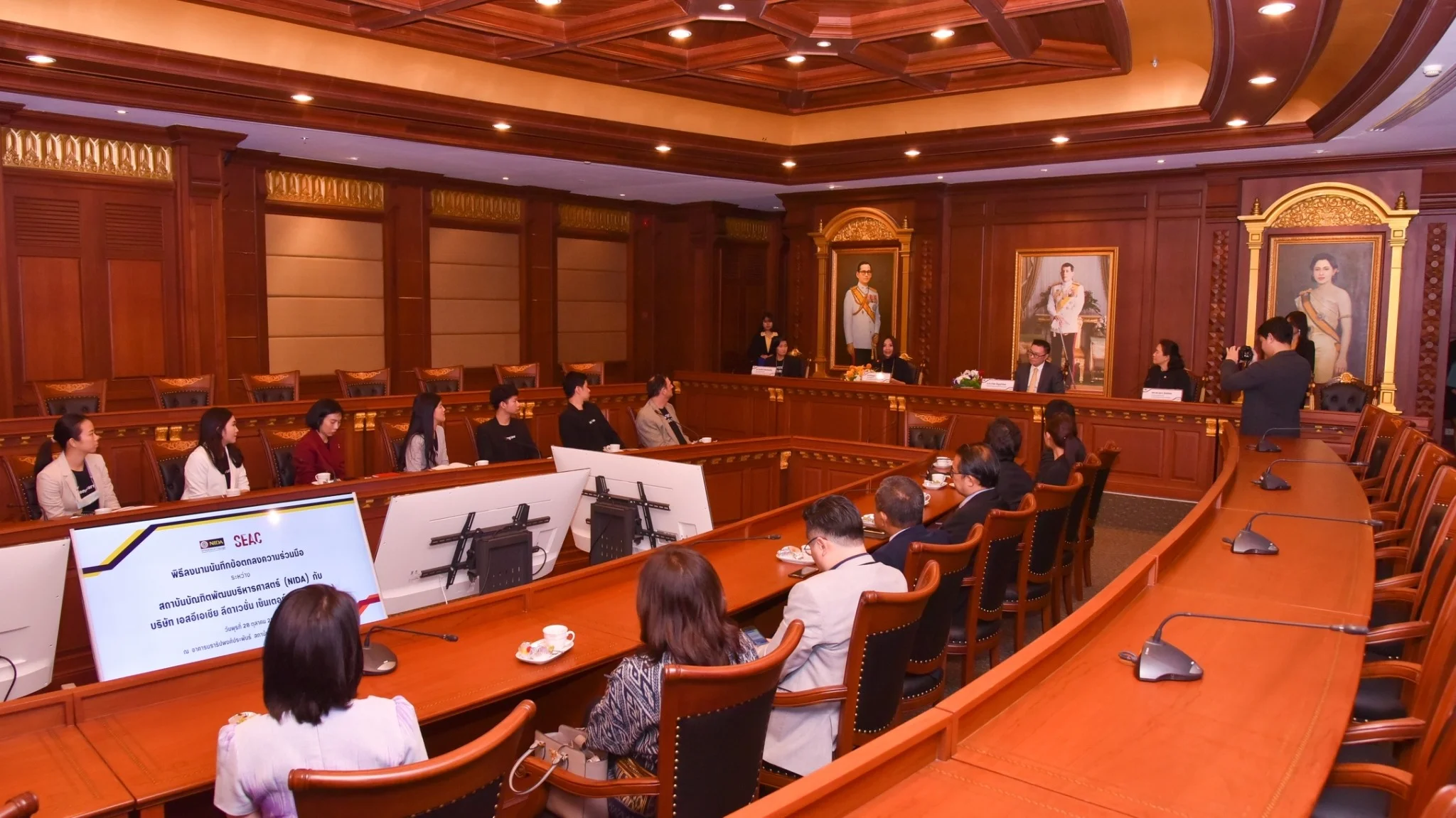 ซึ่งทางนิด้านำโดย ศาสตราจารย์ ดร.กำพล ปัญญาโกเมศ อธิการบดีสถาบันบัณฑิตพัฒนบริหารศาสตร์ พร้อมด้วย ผู้ช่วยศาสตราจารย์ ดร.ณดา จันทร์สม รองอธิการบดีฝ่ายวิชาการ เป็นผู้ลงนามในความร่วมมือ และทางบริษัท เอสอีเอเชีย ลีดาเวชั่น เซ็นเตอร์ จำกัด มีคุณอริญญา เถลิงศรี กรรมการผู้จัดการ บริษัท เอสอีเอเชีย ลีดาเวชั่น เซ็นเตอร์ จำกัด พร้อมด้วย ดร.ธิดารัตน์ อริยะประเสริฐ ผู้อำนวยการฝ่ายพัฒนาธุรกิจ เป็นผู้ลงนามในความร่วมมือ โดยมีแขกผู้มีเกียรติจากทั้งสองฝ่ายเข้าร่วมเป็นสักขีพยานในการลงนามความร่วมมือระหว่างกัน