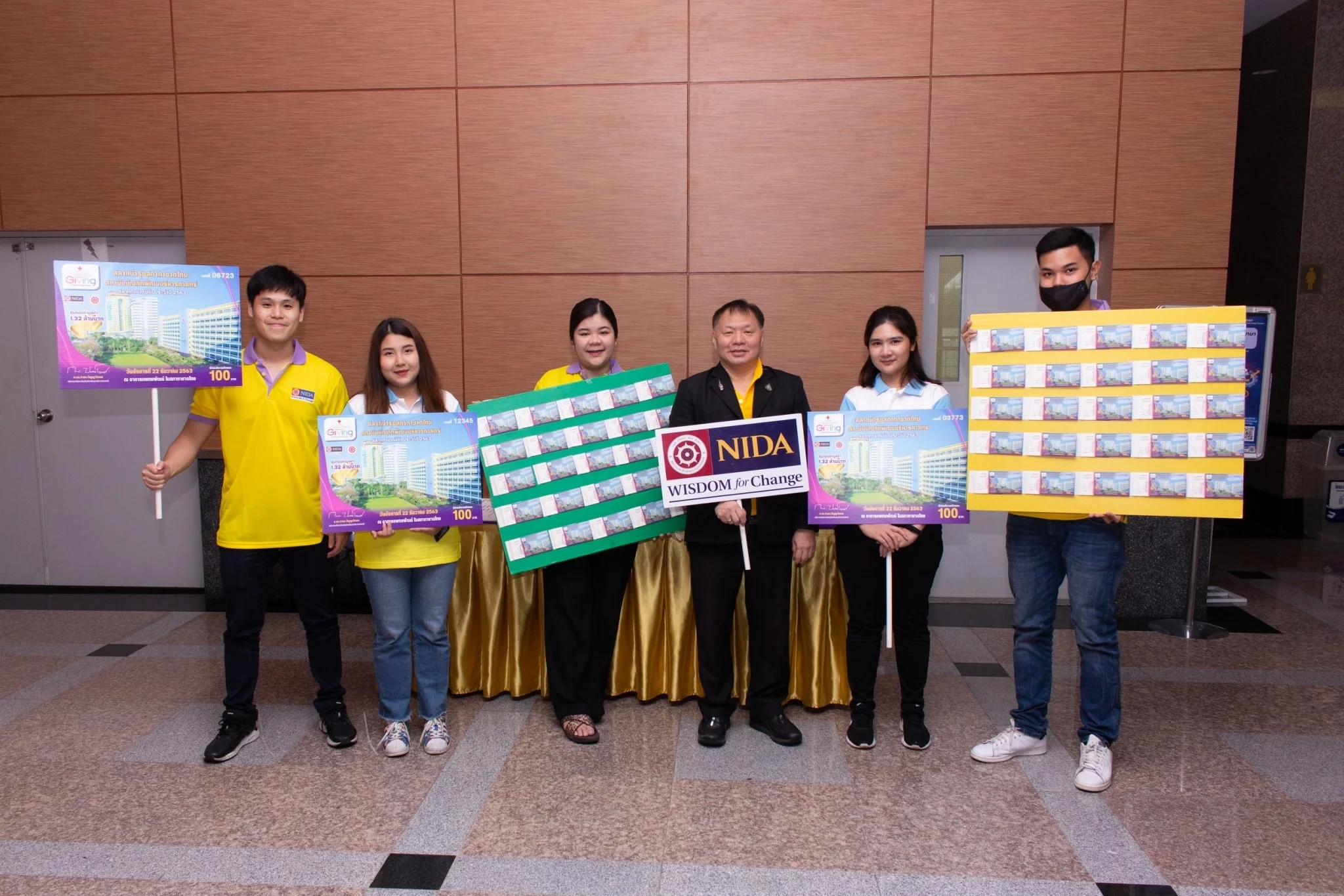 ร่วมซื้อสลากกาชาดนิด้า ฉบับละ 100 บาท ลุ้นรางวัลทองคำ 450 รางวัล รวมมูลค่า 1.32 ล้านบาท
