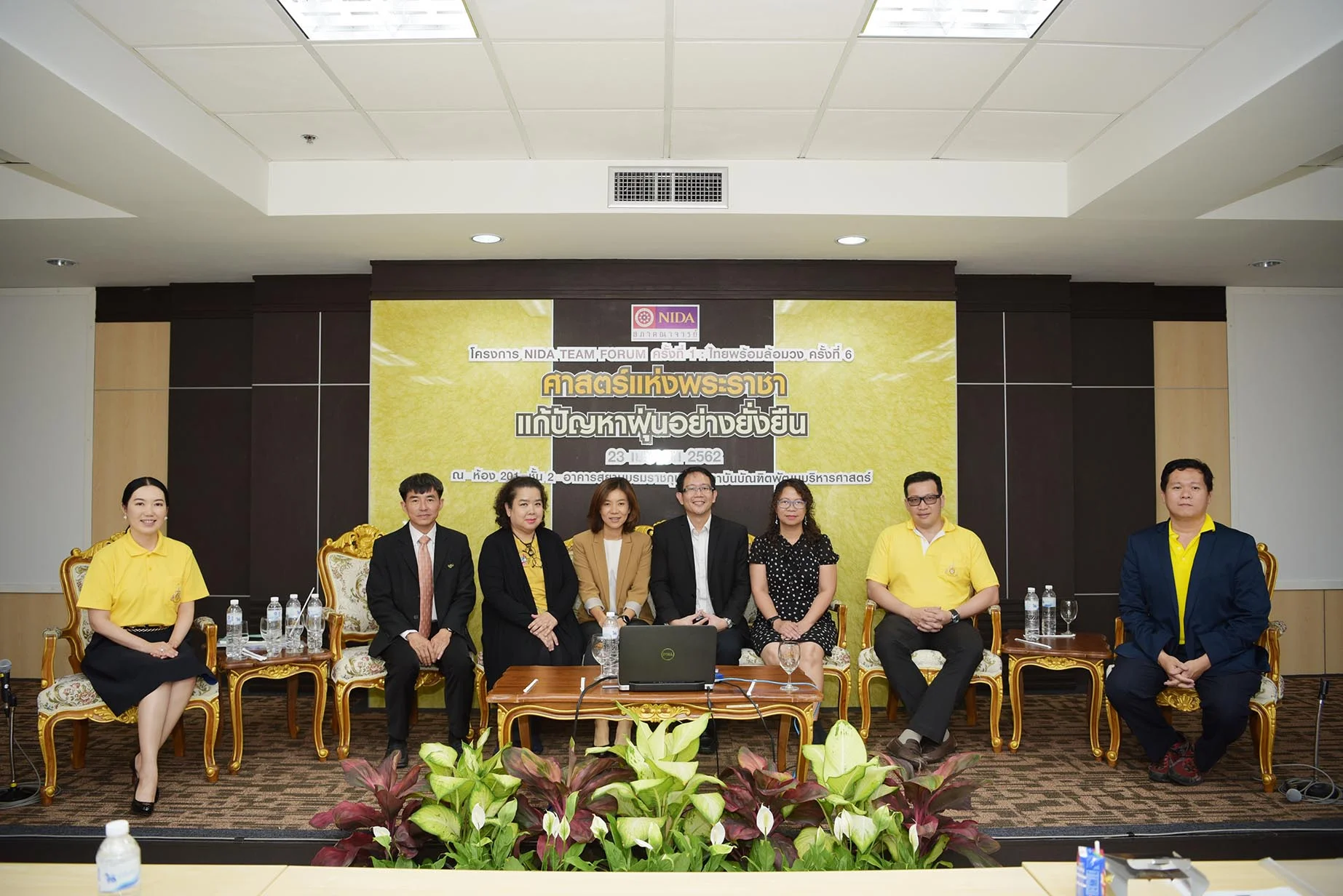 เมื่อวันที่ 23 เมษายน 2562 สภาคณาจารย์ นิด้า ร่วมจัดเวทีเสวนา หัวข้อ ศาตร์แห่งพระราชาแก้ปัญหาฝุ่นอย่างยั่งยืน ในโครงการ NIDA TEAM FORUM ครั้งที่ 1 : ไทยพร้อมล้อมวง ครั้งที่ 6 โดยความร่วมมือจาก สภาคณาจารย์ นิด้า / นิด้า Forum / ไทยพร้อมล้อมวง และ ThaiPBS ณ ห้อง 201 อาคารสยามบรมราชกุมารี สถาบันบัณฑิตพัฒนบริหารศาสตร์