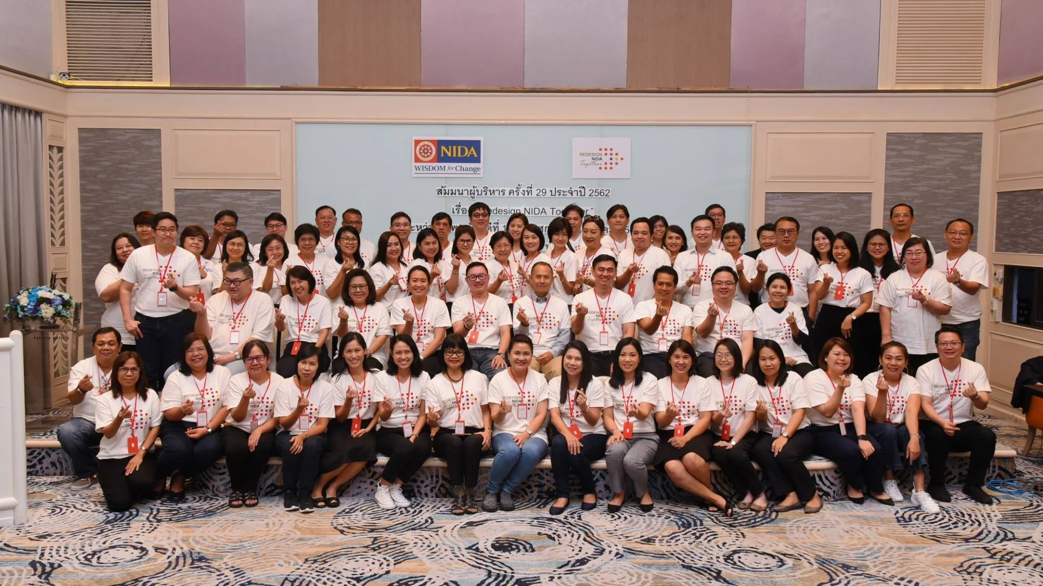สถาบันบัณฑิตพัฒนบริหารศาสตร์ จัดสัมมนาผู้บริหารสถาบัน ประจำปี 2562 เมื่อวันที่ 10-11 มกราคม 2562 ในหัวข้อเรื่อง “Redesign NIDA Together” เพื่อร่วมกันหาแนวทางพัฒนาสถาบันในอนาคต ผู้เข้าร่วมสัมมนาประกอบด้วย คณะผู้บริหารสถาบัน ผู้บริหารคณะ/สำนัก ผู้บริหารระดับกลาง และตัวแทนนักศึกษาเก่าของสถาบัน