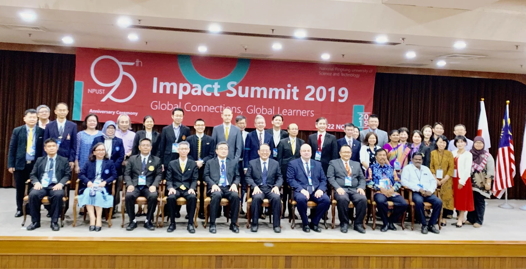 รศ.ดร.อัศวิน เนตรโพธิ์แก้ว ผู้ช่วยอธิการบดีฝ่ายสื่อสารองค์การและกิจการนักศึกษา เดินทางเยือน National Pingtung University of Science and Technology (NPUST) สาธารณรัฐจีน (ไต้หวัน) เพื่อร่วมแสดงความยินดีในโอกาสเฉลิมฉลองครบรอบการสถาปนามหาวิทยาลัย 95 ปี ของ NPUST และเข้าร่วมประชุม Global Impact Summit 2019 ร่วมกับ ผู้แทนจากสถาบันการศึกษาต่างๆ ในประเทศไทยและต่างประเทศ โดยได้รับการต้อนรับอย่างดี จาก Dr.Chang-Hsien Tai, NPUST President ระหว่างวันที่ 21 – 24 พฤศจิกายน 2562