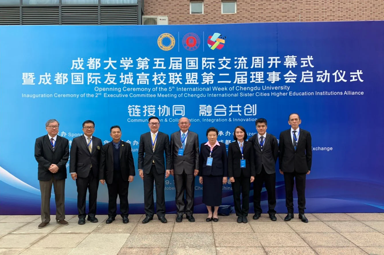 ศาสตราจารย์ ดร.กำพล ปัญญาโกเมศ อธิการบดี และผู้ช่วยศาสตราจารย์ ดร.กนกกานต์ แก้วนุช ผู้ช่วยอธิการบดีฝ่ายกิจการนานาชาติ เดินทางไปเข้าร่วมงานประชุม Inauguration Ceremony of the 2nd Executive Committee Meeting of Chengdu International Sister Cities Higher Education Institutions Alliance ที่จัดขึ้น ณ มหาวิทยาลัยเฉิงตู สาธารณรัฐประชาชนจีน และพบปะพูดคุยกับอธิการบดีจากมหาวิทยาลัยในประเทศไทย เพื่อหารือเกี่ยวกับการสร้างความร่วมมือระหว่างมหาวิทยาลัยในไทยและในจีน เมื่อวันที่ 15 ตุลาคม 2562