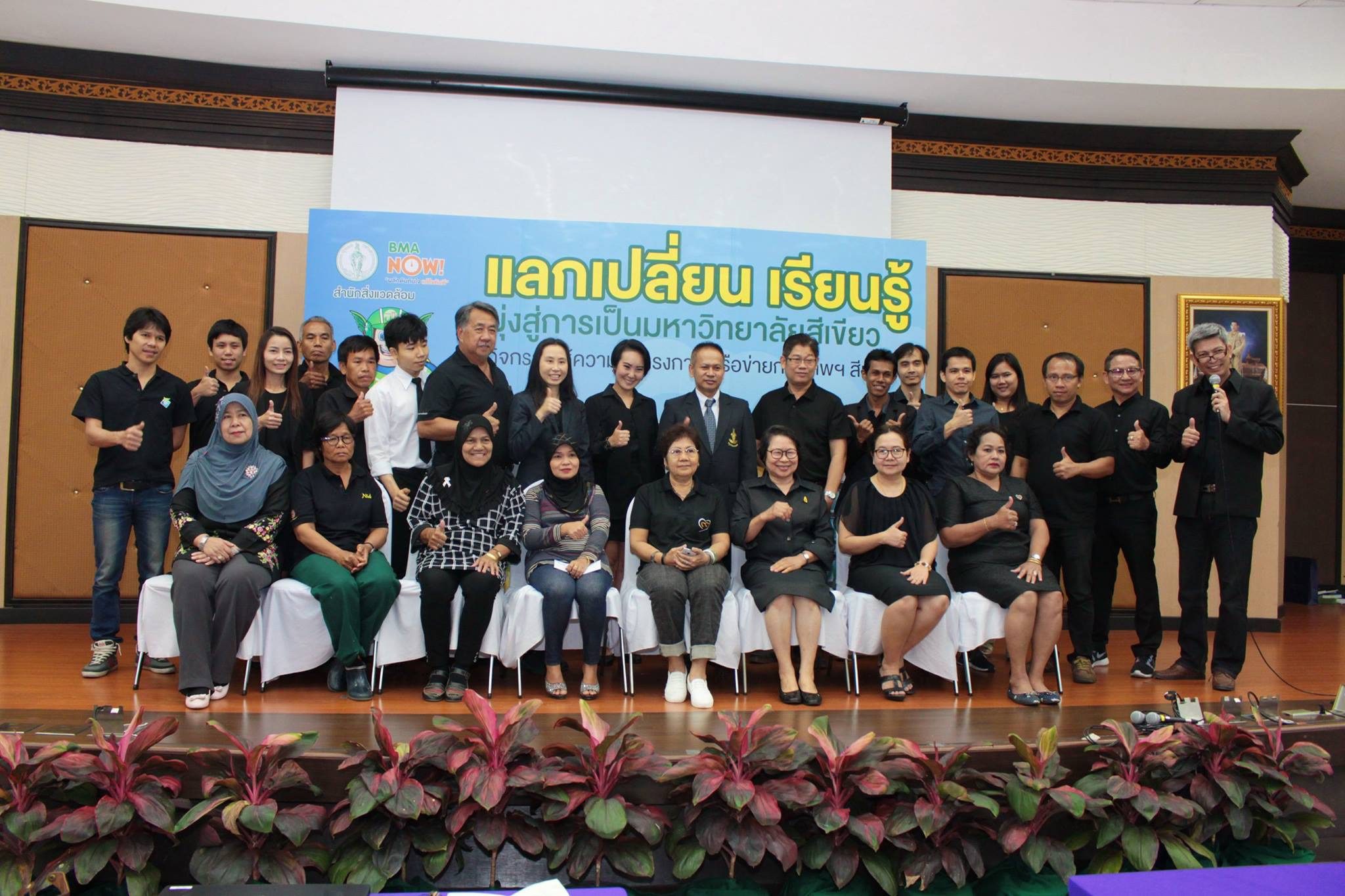 ทั้งนี้ได้ร่วมเสวนาในหัวข้อ “รักษ์สถาบัน รักษ์สิ่งแวดล้อม” กิจกรรมสร้างความรู้ความเข้าใจถึงความสำคัญของการเข้ามามีส่วนร่วมเป็นภาคีเครือข่ายจัดการและแก้ไขปัญหาด้านสิ่งแวดล้อมในกรุงเทพมหานคร (กลุ่มมหาวิทยาลัย) โครงการเครือข่ายกรุงเทพฯ สีเขียว ณ ห้องประชุมจิระ บุญมาก ชั้น 3 อาคารสยามบรมราชกุมารี สถาบันบัณฑิตพัฒนบริหารศาสตร์ นายกฤต จันทร์วัฒนรุ่ง หัวหน้ากลุ่มงานพัฒนาภูมิทัศน์ สถาบันบัณฑิตพัฒนบริหารศาสตร์ นายทะนันชัย มีสุข หัวหน้ากลุ่มงานโยธาและซ่อมบำรุง สถาบันบัณฑิตพัฒนบริหารศาสตร์ นายภาณุวัฒน์ อ่อนเทศ หัวหน้ากลุ่มงานแผนงานและประเมินผล กองนโยบายและแผนงาน สำนักสิ่งแวดล้อม กรุงเทพมหานคร นางสาวจรัญพร เลิศสหกุล ผู้จัดการกรีนสไตล์วิสาหกิจเพื่อสังคม ร่วมแลกเปลี่ยนข้อมูล ความรู้ร่วมกับสมาชิกเครือข่ายเกี่ยวกับการจัดการด้านสิ่งแวดล้อม ดำเนินรายการโดย นายนพดล สุขวรรณ ผู้เชี่ยวชาญด้านการมีส่วนร่วมของประชาชน