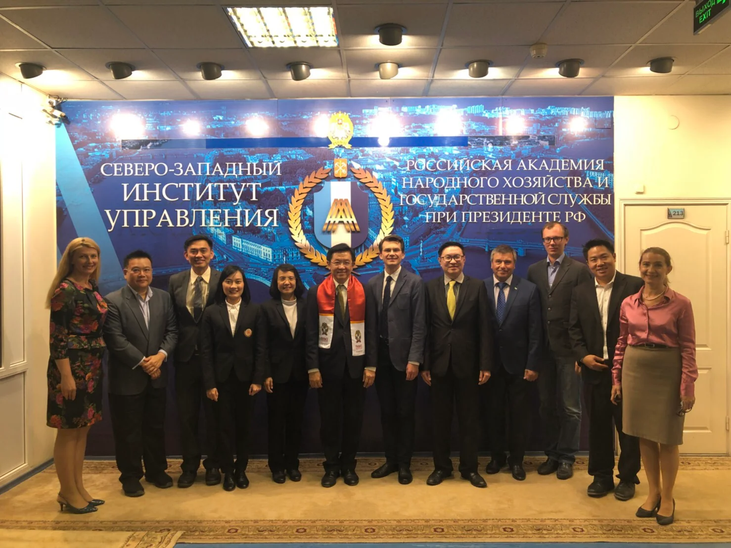ณ เซนต์ปีเตอร์สเบิร์ก สหพันธรัฐรัสเซีย โดยมี Dr.Kitin Evgeniy, Deputy Director of North-West Institute of Management of RANEPA; Dr.Sergey Chizhikov, Dean of the Faculty of Customs Regulation and Security; Dr.Boris Kabylinskii, Vice-Dean of Faculty of Customs Regulations and Security; Dr.Muyzinik Natalia, Head of the Department of International Cooperation และ Dr.Chernyavskaya Evgenia, Deputy Head of Department of International Cooperation ให้การต้อนรับและร่วมพิธีลงนามในข้อตกลงความร่วมมือระหว่างสองสถาบัน