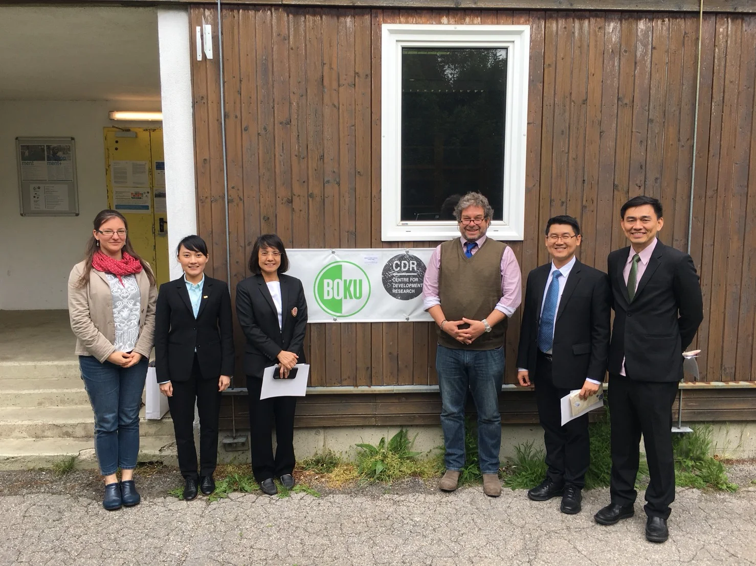 รศ.ดร.ประดิษฐ์ วรรณรัตน์ อธิการบดี รศ.ดร.ระวีวรรณ เอื้อพันธ์วิริยะกุล รองอธิการบดีฝ่ายวิชาการ รศ.ดร.ประพนธ์ สหพัฒนา รองอธิการบดีฝ่ายบริหาร ผศ.ดร.เกษมศานต์ โชติชาครพันธุ์ รองอธิการบดีฝ่ายวางแผน และ ผศ.ดร.กนกกานต์ แก้วนุช ผู้ช่วยอธิการบดีฝ่ายกิจการนานาชาติ เดินทางเยือน University of Natural Resources and Life Sciences (BOKU) ณ กรุงเวียนนา สาธารณรัฐออสเตรีย