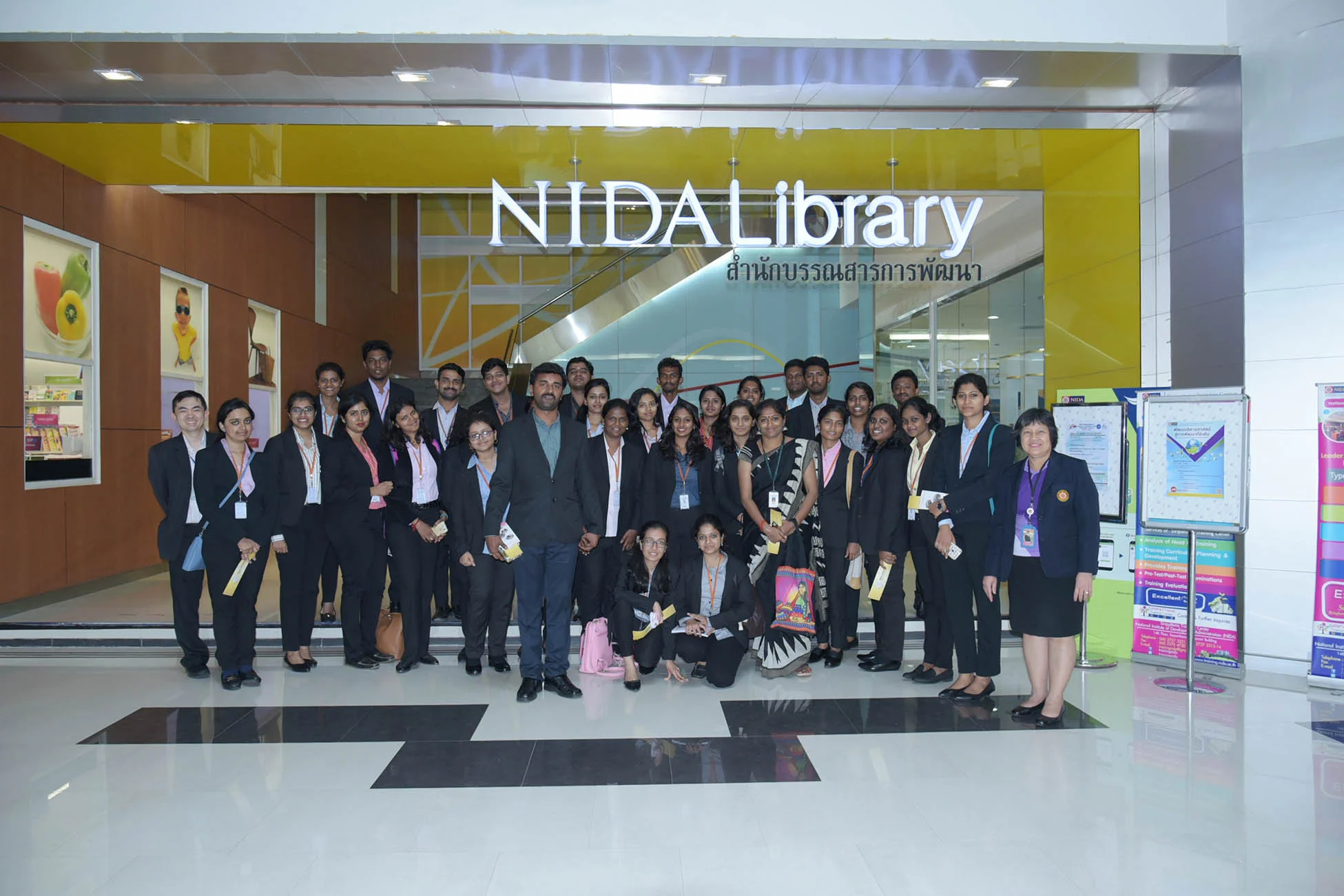 เมื่อวันที่ 23 กุมภาพันธ์ 2561 Ms. Dhivya Sundar Rajan, Faculty coordinator – International Study Tour, Mr. Narendran Siva, Program coordinator และนักศึกษา จำนวน 30 คน จาก D.G. Vaishnav College (DG VC)สาธารณรัฐอินเดีย เดินทางเยือนสถาบันบัณฑิตพัฒนบริหารศาสตร์อย่างเป็นทางการ เพื่อฟังบรรยายข้อมูลหลักสูตรนานาชาติของคณะพัฒนาทรัพยากรมนุษย์