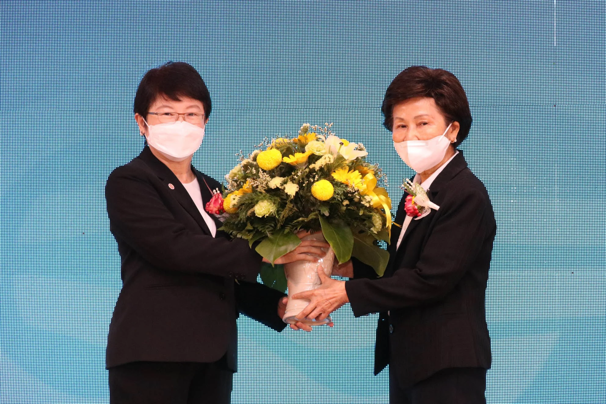 ในโอกาสนี้ รศ.เกศินี วิฑูรชาติ อธิการบดีมหาวิทยาลัยธรรมศาสตร์ ได้มอบดอกไม้แสดงความยินดีแด่ ศ.ดร.ทิพวรรณ หล่อสุวรรณรัตน์ เนื่องในโอกาสเข้ารับตำแหน่งอธิการบดี NIDA ด้วย