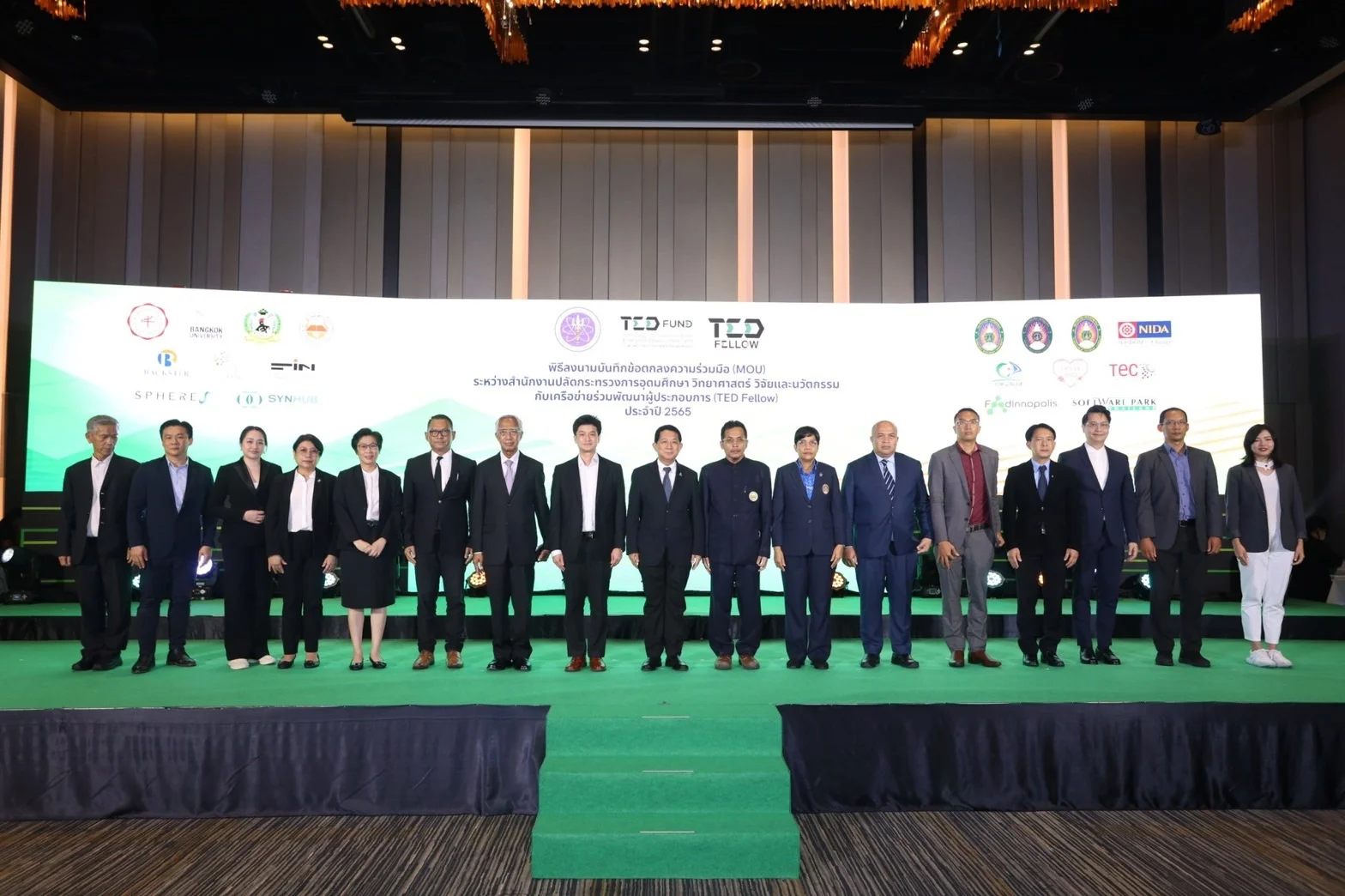 ระหว่างสำนักงานปลัดกระทรวงการอุดมศึกษา วิทยาศาสตร์ วิจัยและนวัตกรรม (สป.อว.) และเครือข่ายร่วมพัฒนาผู้ประกอบการ (TED Fellow) จำนวน 18 หน่วยงานทั่วประเทศ หวังบ่มเพาะพร้อมให้คำปรึกษาแก่ผู้ประกอบการที่ต้องการเงินทุนวิจัยและพัฒนาต่อยอดสู่เชิงพาณิชย์ ประจำปี 2565 ณ ห้องอีเทอร์นิตี้บอลรูม โรงแรมพูลแมน คิงเพาเวอร์ กรุงเทพมหานคร