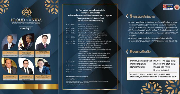 2. หากต้องการให้สถาบันนำเข้าระบบ e-donation เพื่อรับสิทธิหักค่าลดหย่อนภาษีได้สองเท่า และ/หรือ ต้องการรับใบเสร็จรับเงินจากสถาบัน กรุณาส่งหลักฐานการโอนเงินพร้อมรายละเอียด ชื่อ-สกุล เลขที่บัตรประชาชนหรือหมายเลขประจำตัวผู้เสียภาษี หมายเลขโทรศัพท์ติดต่อ และที่อยู่สำหรับจัดส่งใบเสร็จรับเงินมาที่ e-mail : nidafund@sikhio2-nida.todsorb.dev, LINE ID: NIDAFUND, http://www.nidafund.nida.ac.th โทรสาร 0-2377-7503 หรือโทรศัพท์ 0-2727-3453