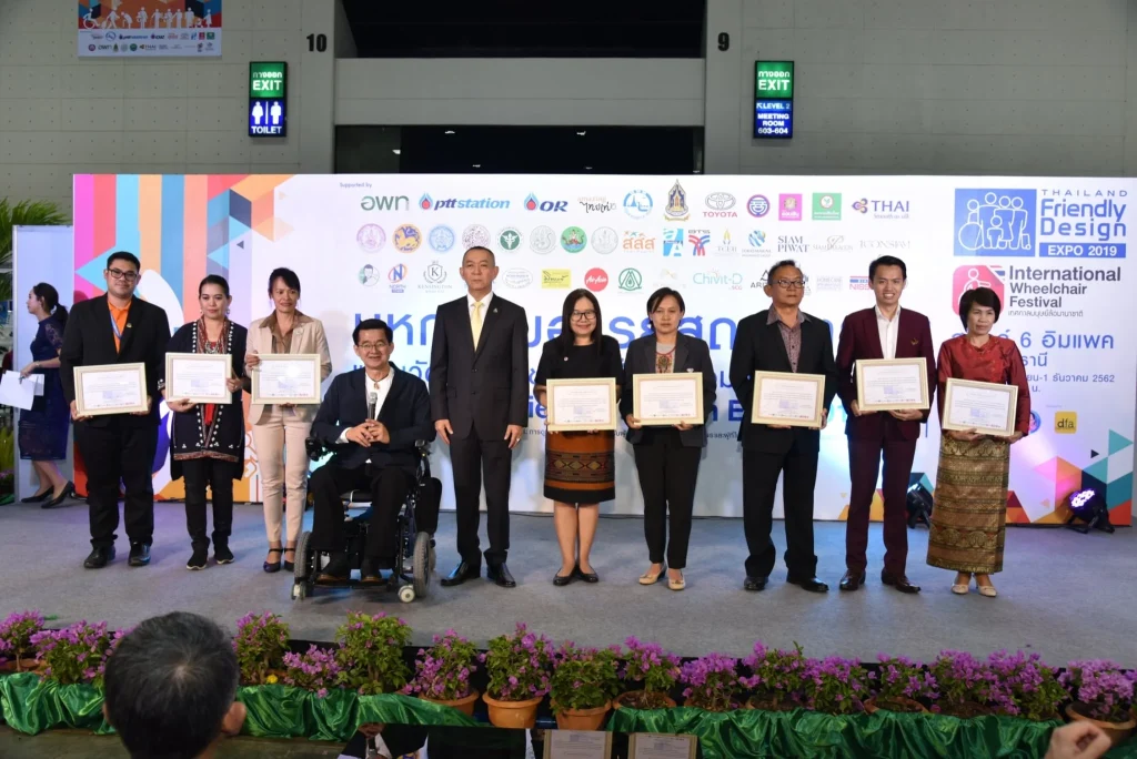 เมื่อวันที่ 28 พฤศจิกายน 2562 นางสาวกาญจนา วงศ์จันทร์ ผู้อำนวยการกองกลาง พร้อมด้วยหัวหน้ากลุ่มงานสื่อสารองค์การฯ และบุคลากรนิด้า เป็นตัวแทนสถาบันร่วมงาน “Thailand Friendly Design Expo 2019” @IMPACT เมืองทองธานี เพื่อรับมอบประกาศเกียรติคุณ รางวัล “Friendly Design Awards 2019” ประเภท “ตึกอาคาร Friendly Design เพื่อคนทั้งมวล” จาก รัฐมนตรีว่าการกระทรวงเกษตรและสหกรณ์