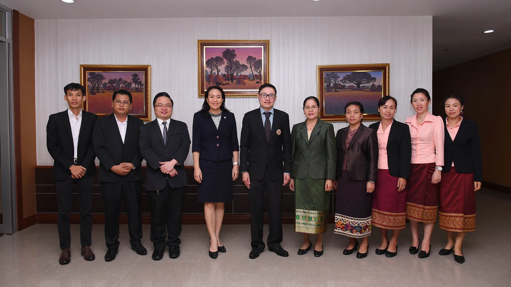 นำโดย Mrs.Douangdy Phimvongsa, Director General, Mrs.Phoutsady Phomphyphak, Deputy Director General, Mrs.Phetsila Khamthongvern, Deputy Head of Cabinet, Mrs.Bounthanom Outhachack, Head of Training and Research, Ms.Vanhnaly Khounbathao, Head of Personnel Division, Mr.Amphon Xaysombath, Head of Section in Training and Mr.Ananthala Nakhiangchanh, Staff of Training and Research, Banking Institute, Bank of Laos สาธารณรัฐประชาธิปไตยประชาชนลาว พร้อมรับประทานอาหารกลางวันกับผู้บริหารสถาบัน ในการนี้ ศ.ดร.กำพล ปัญญาโกเมศ อธิการบดี ผศ.ดร.ณดา จันทร์สม รองอธิการบดีฝ่ายวิชาการ รศ.ดร.จงสวัสดิ์ จงวัฒน์ผล รองอธิการบดีฝ่ายวิจัยและบริการวิชาการ พร้อมด้วยเจ้าหน้าที่กลุ่มงานกิจการนานาชาติ ร่วมให้การต้อนรับ และแลกเปลี่ยนทางวิชาการ ในหัวข้อ “Training Administration and Management” โดย นางธัชตวัน อนันตกูลผู้อำนวยการหลักสูตรนานาชาติ และ นายสมัชญ์ ศกุนะสิงห์ ผู้อำนวยการหลักสูตร Public สำนักสิริพัฒนา พร้อมนำเยี่ยมชมสถานที่ต่างๆ ภายในสถาบันด้วย