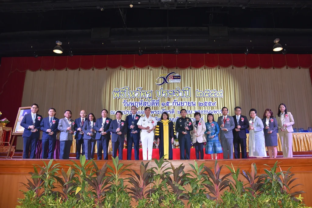 เมื่อวันพฤหัสบดีที่ 15 กันยายน 2559 สถาบันบัณฑิตพัฒนบริหารศาสตร์ จัดพิธีไหว้ครู ประจำปี 2559 ในโอกาสนี้สถาบันได้จัดพิธีมอบโล่นักศึกษาเก่าดีเด่น พิธีมอบโล่และเกียรติบัตรแก่คณะกรรมการบริหารสโมสรนักศึกษา พิธีมอบโล่รางวัลโครงการวัฒนธรรมตรงต่อเวลา และมอบรางวัลเรียนดีแก่นักศึกษาปัจจุบัน