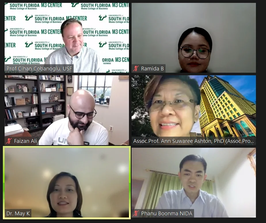 กับ Prof. Dr. Cihan Cobanoglu, CHTP, Interim Dean, School of Hospitality and Tourism Management, McKibbon Endowed Chair & Director of M3 Center, Muma College of Business และผู้แทนจาก University of South Florida สหรัฐอเมริกา เพื่อร่วมพูดคุยหารือถึงโอกาสที่จะมีความร่วมมือทางวิชาการเกี่ยวกับการจัดทำหลักสูตรสองปริญญา/หลักสูตรร่วมปริญญา การแลกเปลี่ยนนักศึกษาและคณาจารย์ และการจัดทำผลงานวิจัยตีพิมพ์ร่วมกัน ซึ่งทั้ง 2 ฝ่ายตกลงเห็นชอบที่จะมีความร่วมมือระหว่างกันต่อไป
