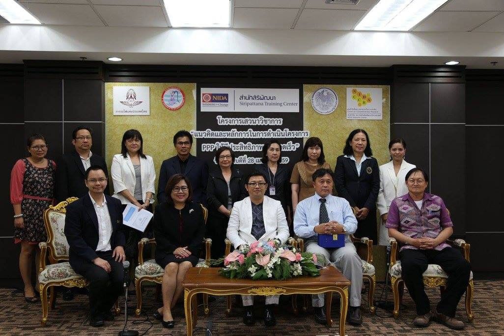 การจัดการเสวนาวิชาการในครั้งนี้ มีวัตถุประสงค์เพื่อให้แนวคิดและหลักการในการดำเนินโครงการ PPP (Public-Private Partnership) ให้สำเร็จอย่างมีประสิทธิภาพและรวดเร็ว เพื่อให้ความรู้แก่หน่วยงานที่มีความสนใจทำโครงการให้เอกชนร่วมลงทุนในกิจการของรัฐ ตามพระราชบัญญัติปี พ.ศ.2556 และเพื่อให้ความรู้และประชาสัมพันธ์แนวทางปฏิบัติและแผนยุทธศาสตร์การให้เอกชนร่วมลงทุนในกิจการของรัฐ ภายในงานมีการเสวนาในหัวข้อต่างๆ จากวิทยากรผู้ทรงคุณวุฒิ ดังนี้ หัวข้อ ความสำคัญของความร่วมมือภาครัฐ-ภาคเอกชน (PPP) ต่อประเทศไทย โดย ผศ.ดร.ประดิษฐ์ วิธิศุภกร(ผู้อำนวยการศูนย์วิจัยขีดความสามารถในการแข่งขัน สำนักวิจัย นิด้า) หัวข้อ ความร่วมมือภาครัฐ-ภาคเอกชน (PPP) กับเศรษฐกิจไทย ปี 2559 โดย คุณประเสริฐ สายพวรรณ์(นักวิจัยหลักศูนย์วิจัยขีดความสามารถในการแข่งขัน สำนักวิจัย นิด้า) หัวข้อ ความสำเร็จของโครงการความร่วมมือภาครัฐ-ภาคเอกชน (PPP) ในปัจจุบัน โดย คุณจิตต์พิชชา เซี่ยงเซียว(กรรมการสมาคมพัฒนาอสังหาริมทรัพย์ไทย หัวข้อ พระราชบัญญัติการให้เอกชนร่วมลงทุนกับภาครัฐ พ.ศ.2536 โดย ดร.เอกนิติ นิติทัณฑ์ประภาส (ผู้อำนวยการสำนักงานคณะกรรมการนโยบายรัฐวิสาหกิจ หรือ สคร.) หัวข้อ นำเสนอตัวอย่างโครงการความร่วมมือภาครัฐ-ภาคเอกชน (PPP) ของการรถไฟแห่งประเทศไทย (ร.ฟ.ท.) โดย คุณฐากูร อินทรชม(ผู้อำนวยการฝ่ายบริหารทรัพย์สิน การรถไฟแห่งประเทศไทย หรือ ร.ฟ.ท.) ณ ห้อง 202 ชั้น 2 อาคารสยามบรมราชกุมารี สถาบันบัณฑิตพัฒนบริหารศาสตร์