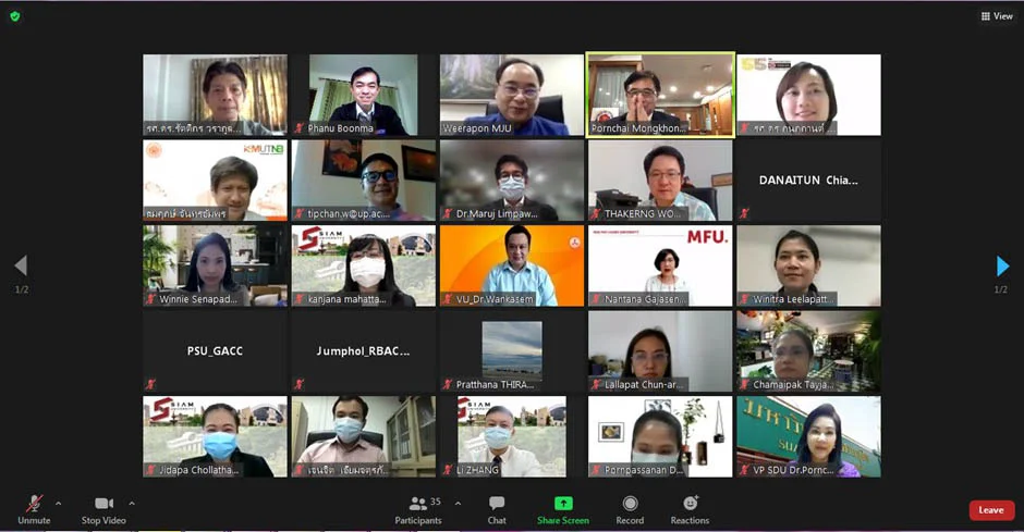 เมื่อวันที่ 13 สิงหาคม 2564 รศ.ดร.กนกกานต์ แก้วนุช ผู้ช่วยอธิการบดีฝ่ายกิจการนานาชาติ และกลุ่มงานกิจการนานาชาติได้ร่วมการประชุมหารือการสร้างเครือข่ายมหาวิทยาลัยไทยเพื่อเข้าร่วมเป็นสมาชิก Alliance of China-Thailand University (ACTU) จัดโดย ดร.พรชัย มงคลวนิช อธิการบดีมหาวิทยาลัยสยาม ผ่านระบบประชุมออนไลน์ ZOOM
