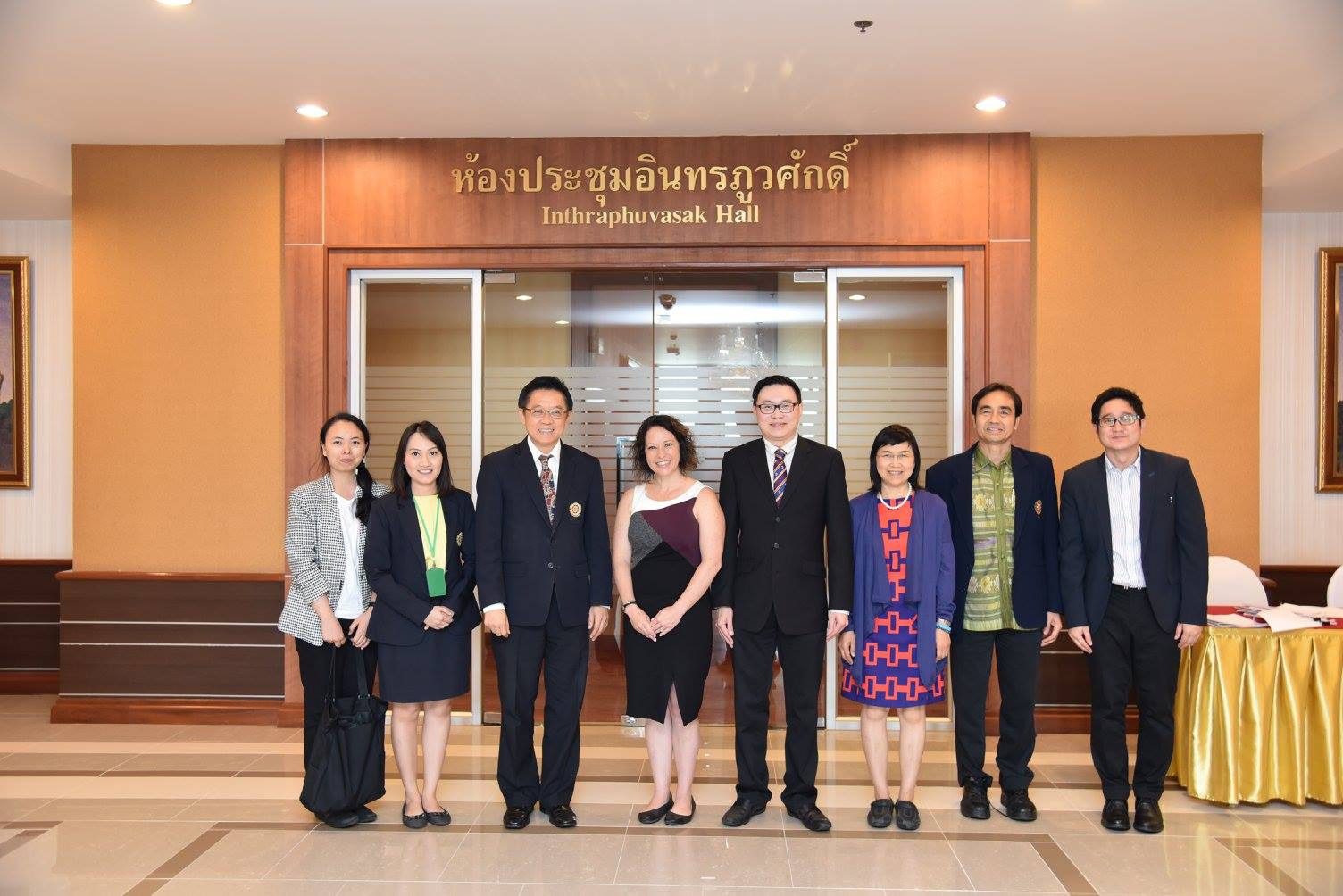 ในการนี้ รองศาสตราจารย์ ดร.ประดิษฐ์ วรรณรัตน์ อธิการบดี ผู้บริหารสถาบันฯ รองอธิการบดีฝ่ายวิจัย ผู้ช่วยอธิการบดีฝ่ายกิจการนานาชาติ และคณาจารย์ พร้อมด้วยเจ้าหน้าที่กลุ่มงานกิจการนานาชาติ ร่วมให้การต้อนรับด้วย