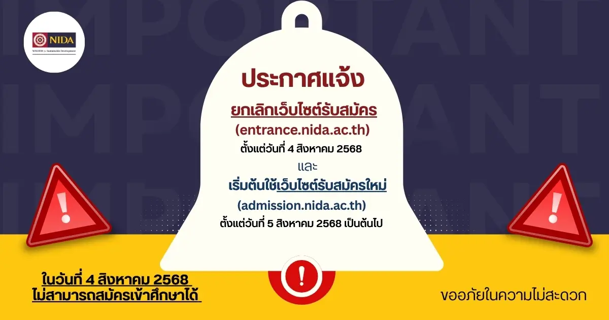 🚩 เว็บไซต์รับสมัครเดิม entrance.nida.ac.th จะปิดให้บริการตั้งแต่วันที่ 4 สิงหาคม 2568