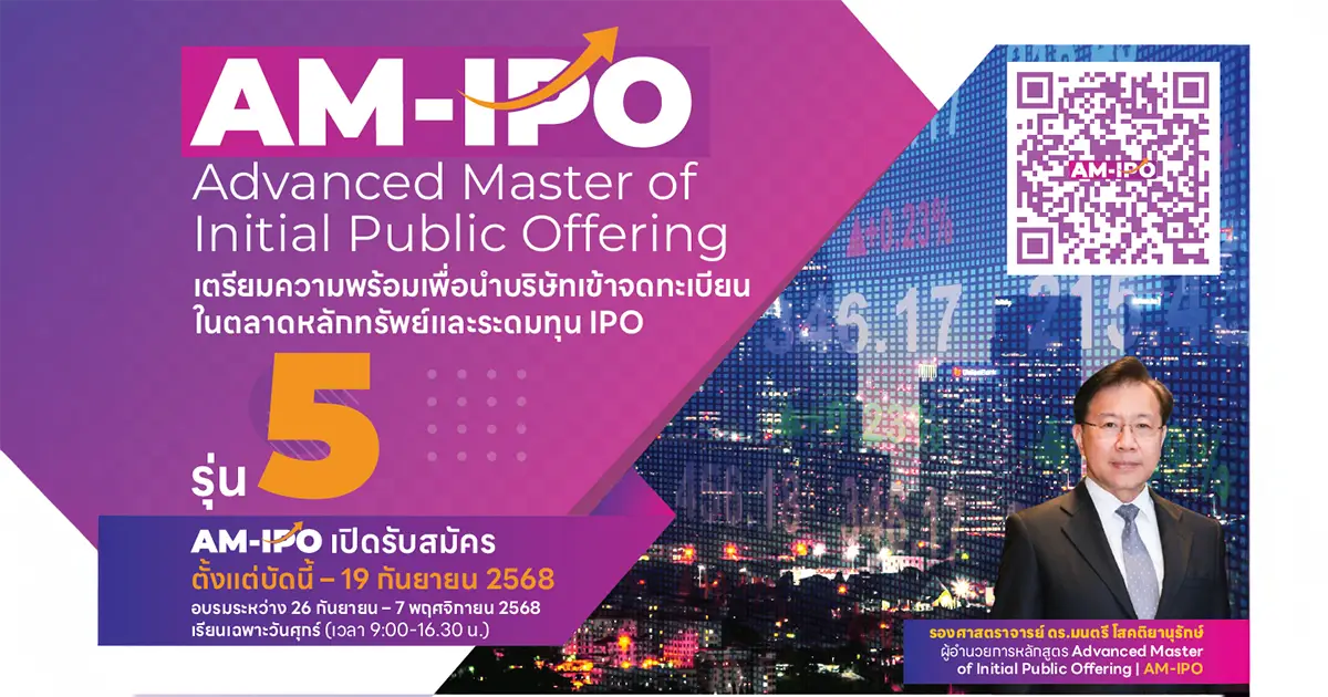 🚀 อย่าพลาดโอกาสสำคัญในการยกระดับบริษัทของคุณ ก้าวแรกสู่ความสำเร็จบนเส้นทางตลาดหลักทรัพย์ เริ่มต้นที่ AM-IPO รุ่นที่ 5