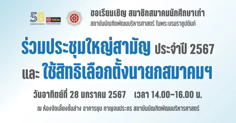 ข่าวสาร ขอเชิญสมาชิกสมาคมนักศึกษาเก่า สถาบันบัณฑิตพัฒนบริหารศาสตร์ ในพระบรมราชูปถัมภ์27 December 20232 January 2024