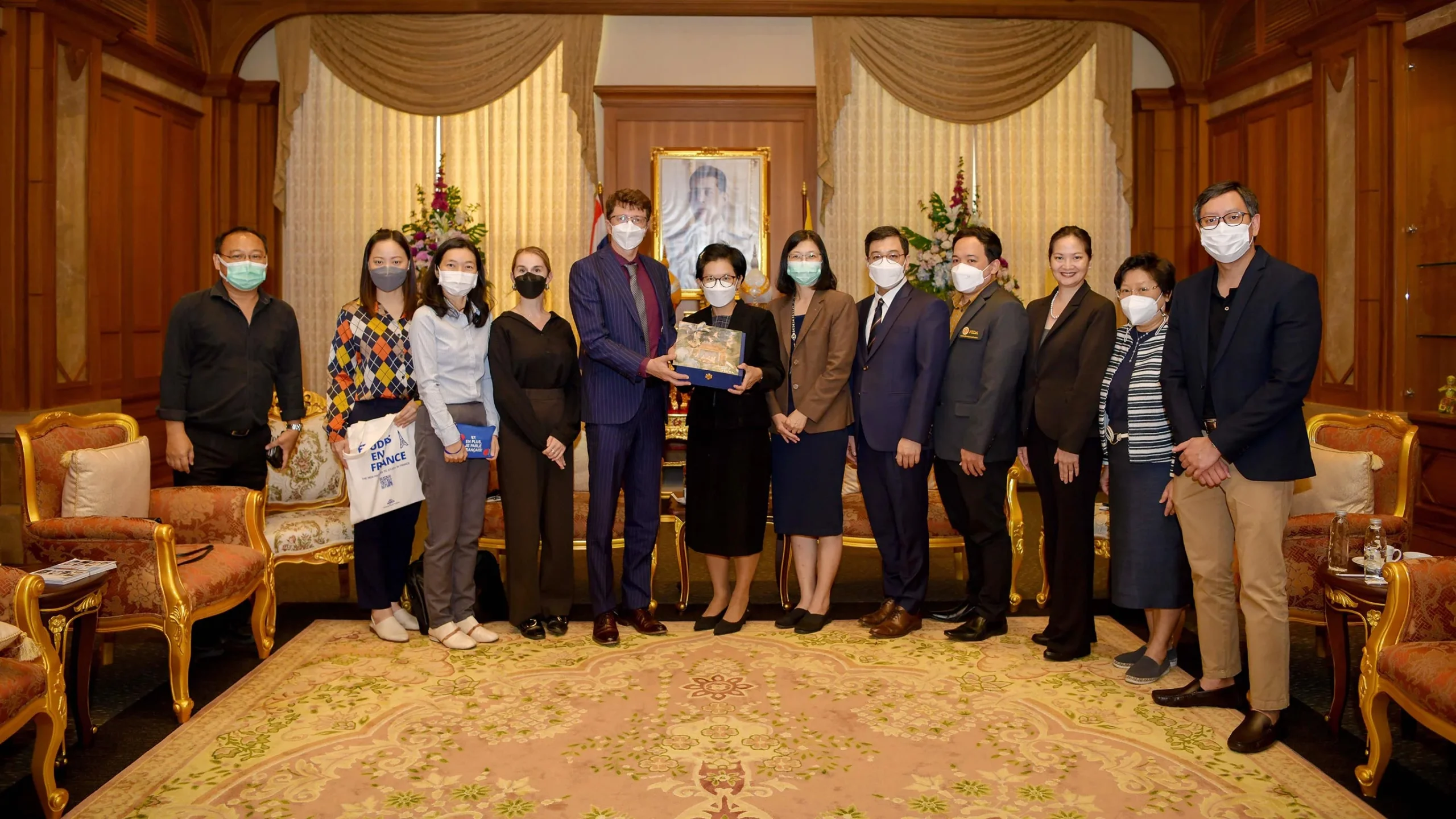 ในการนี้ ศาสตราจารย์ ดร.วิสาขา ภู่จินดา รองอธิการบดีฝ่ายวิจัยและบริการวิชาการ ผู้ช่วยศาสตราจารย์ ดร.อารี มโนสุทธิกิจ ผู้ช่วยอธิการบดีฝ่ายกิจการนานาชาติ รองศาสตราจารย์ ดร.จันทรานุช มหากาญจนะ ผู้ช่วยอธิการบดีฝ่ายกิจการนักศึกษาและศิษย์เก่าสัมพันธ์ ผู้ช่วยศาสตราจารย์ ดร.จเร สิงหโกวินท์ คณบดีคณะพัฒนาสังคมและยุทธศาสตร์การบริหาร ผู้ช่วยศาสตราจารย์ ดร.ศรัณย์ ศานติศาสน์ รองคณบดีฝ่ายบริหาร คณะพัฒนาการเศรษฐกิจ ผู้ช่วยศาสตราจารย์ ดร.วิศิษฎ์ ชัยศรีสวัสดิ์สุข รองคณบดีฝ่ายวางแผนและพัฒนา คณะพัฒนาการเศรษฐกิจ ผู้ช่วยศาสตราจารย์ ดร.กฤษฎากร ว่องวุฒิกุล รองคณบดีฝ่ายวางแผนและพัฒนา คณะนิติศาสตร์ ดร.ศิวิกา ดุษฎีโหนด รองคณบดีฝ่ายวิชาการ คณะสถิติประยุกต์ คุณนิภา ชุมสุข รักษาการแทนผู้อำนวยการกองวิเทศสัมพันธ์และสื่อสารองค์การ และ คุณพัชรา ชัยวัฒนากุลกิจ นักวิเทศสัมพันธ์ ให้การต้อนรับและร่วมหารือความร่วมมือทางวิชาการ ณ ห้องราชพฤกษ์ (ห้อง VIP) ชั้น ๒ อาคารนราธิปพงศ์ประพันธ์ รวมถึง คณะผู้แทนจาก Campus France ได้จัดการบรรยายแนะแนวการศึกษาและทุนการศึกษาต่อ ณ สาธารณรัฐฝรั่งเศส ให้แก่นักศึกษาและบุคลากรของสถาบัน ในหัวข้อ “Studies in France and Scholarships & Fellowship and Mobility Programs”