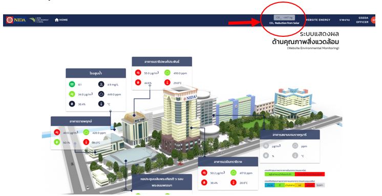 2. แหล่งข้อมูลติดตาม การลดการปล่อยก๊าซ CO2 จาก Solar cell ( http://environment.nida.ac.th )