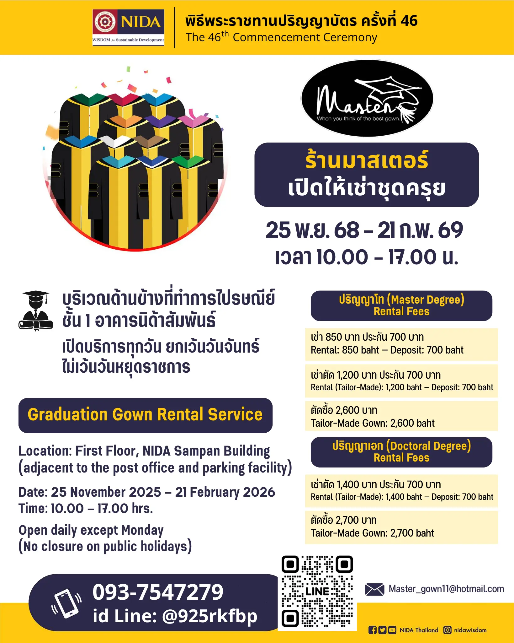 สถานที่จอดรถและข้อเสนอแนะ สำหรับมหาบัณฑิต ดุษฎีบัณฑิต และญาติ ในพิธีพระราชทานปริญญาบัตรครั้งที่ 46