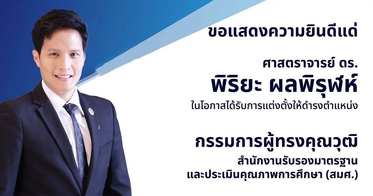 สถาบันขอแสดงความยินดีแด่ ศาสตราจารย์ ดร.พิริยะ ผลพิรุฬห์ ในโอกาสได้รับการแต่งตั้งให้ดำรงตำแหน่งกรรมการผู้ทรงคุณวุฒิ สำนักงานรับรองมาตรฐานและประเมินคุณภาพการศึกษา (สมศ.)