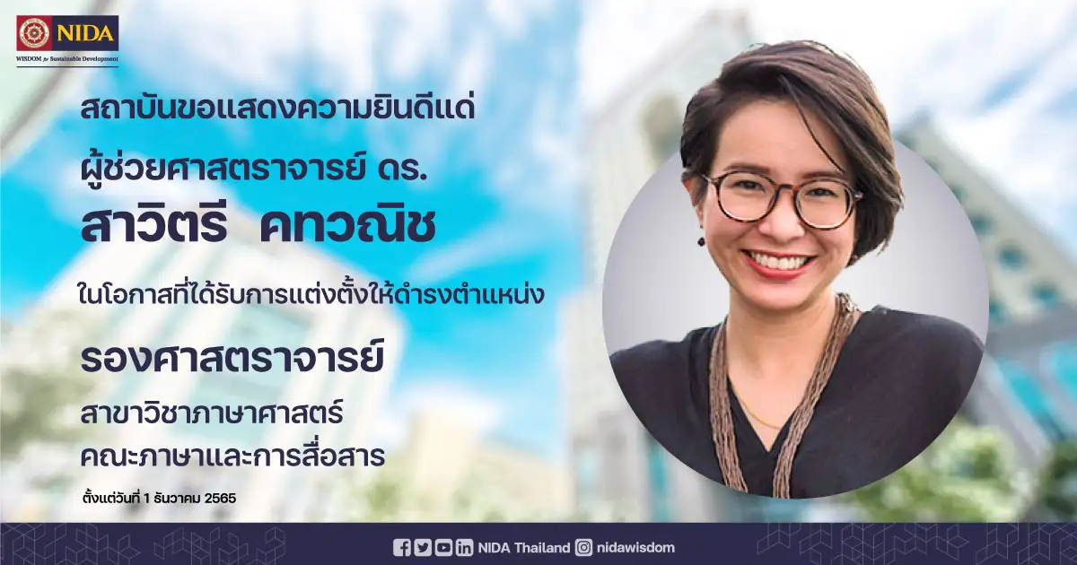 ‘รองศาสตราจารย์’ (รหัส 7401) สังกัดคณะภาษาและการสื่อสาร ตั้งแต่วันที่ 1 ธันวาคม 2565