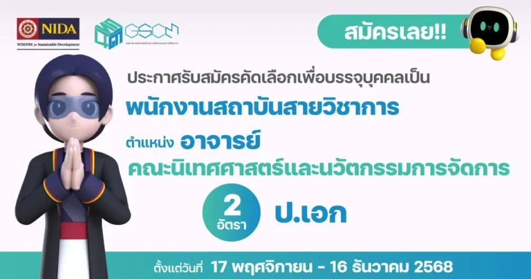 - ผลการสอบแข่งขันเพื่อบรรจุบุคคลเป็นพนักงานสถาบันสายสนับสนุนวิชาการ ตำแหน่งนักวิชาการศึกษา ระดับปฏิบัติการ สังกัดคณะพัฒนาสังคมและยุทธศาสตร์การบริหาร 14/07/2025