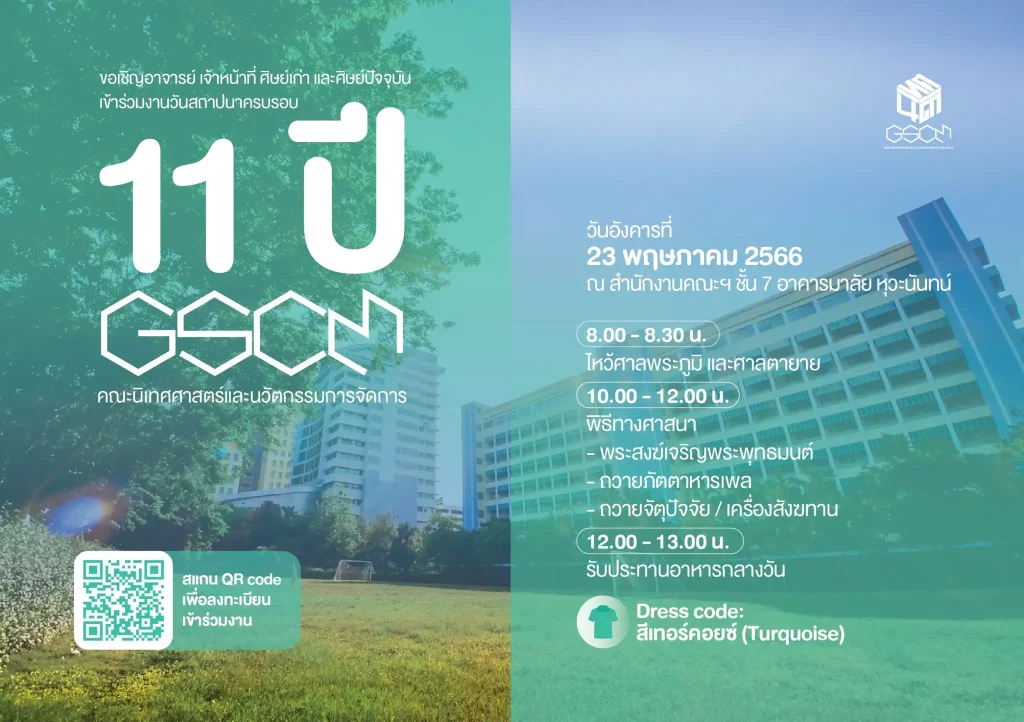 ขอเชิญอาจารย์ เจ้าหน้าที่ ศิษย์เก่า และศิษย์ปัจจุบัน เข้าร่วมงานวันสถาปนาครบรอบ 11 ปี คณะนิเทศศาสตร์และนวัตกรรมการจัดการ