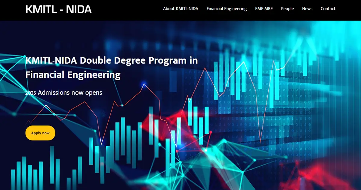 KMITL-NIDA Double Degree Program in Financial Engineering is a combined Bachelor’s and Master’s degree program jointly offered by Faculty of Engineering, King Mongkut’s Institute of Technology Ladkrabang, and School of Development Economics, National Institute of Development Administration. The program intends to train a new generation of financial engineers who have a strong foundation in the theories of economics and finance, mathematical methods for quantitative data analysis, and computer programming and technologies that are useful in finance, and are capable of integrating and utilizing all those knowledge and skills in order to solve complex financial problems faced by organizations in these days. The graduates are expected to be able to skillfully analyze huge amount financial data to support the planning of the firm’s investment strategies and the management of risks and be able to design financial tools, products, and innovations that meet the needs of the industry. The program also aims to train its students to be ready to work confidently in the international environment with integrity and professional ethics.