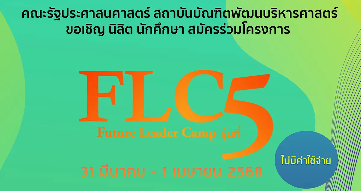 ขอเชิญนักศึกษาระดับปริญญาตรีชั้นปีสุดท้ายทุกสาขา สมัครเข้าร่วมโครงการ “GSPA NIDA – Future Leaders Camp (FLC) รุ่นที่ 5”