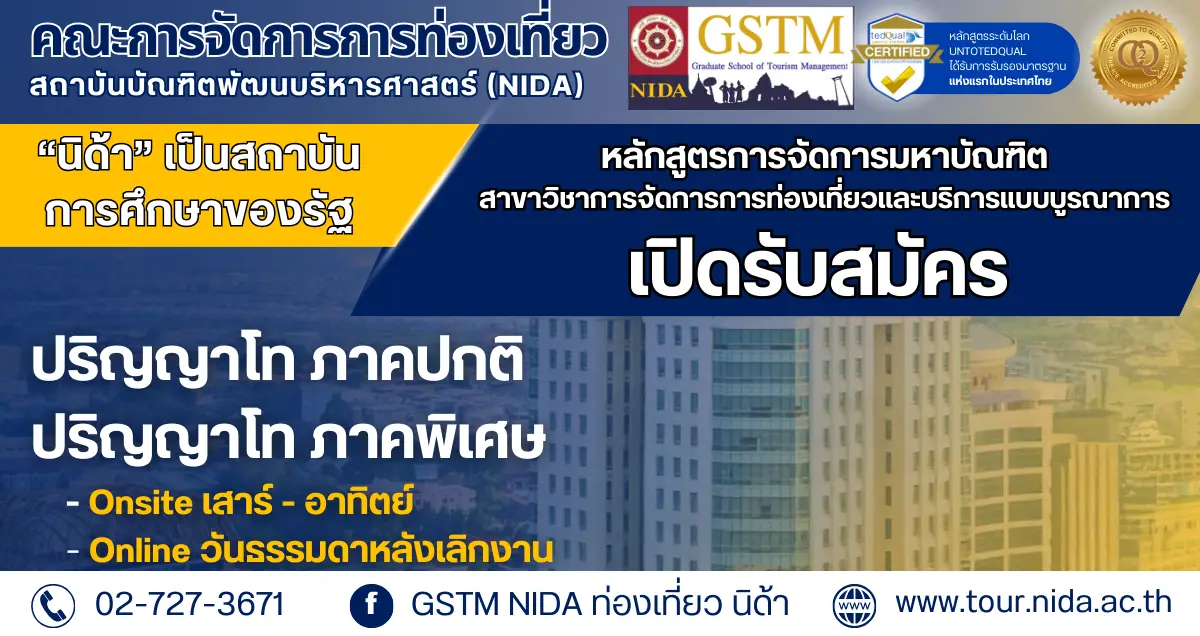 #เพราะท่องเที่ยวนิด้าคือที่สุด #GSTM_NextDecade #ปอโทท่องเที่ยวนิด้า #UNWTOTedqual #NIDA #NIDAThailand #WISDOMforSustainableDevelopment #สร้างปัญญาเพื่อการพัฒนาที่ยั่งยืน