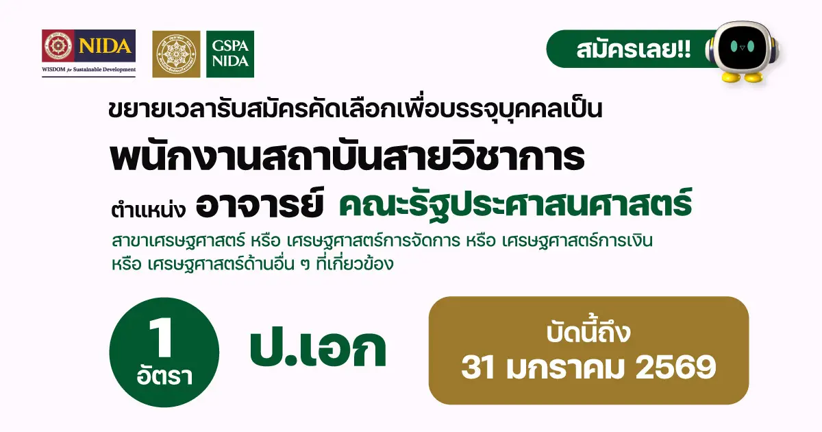 นิด้า เปิดรับสมัครสอบคัดเลือกเพื่อบรรจุบุคคลเป็นพนักงานสถาบันสายวิชาการ