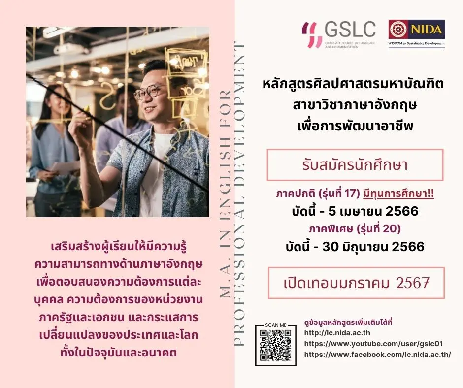 ศิลปศาสตรมหาบัณฑิต สาขาวิชาภาษาอังกฤษเพื่อการพัฒนาอาชีพ ภาคปกติ