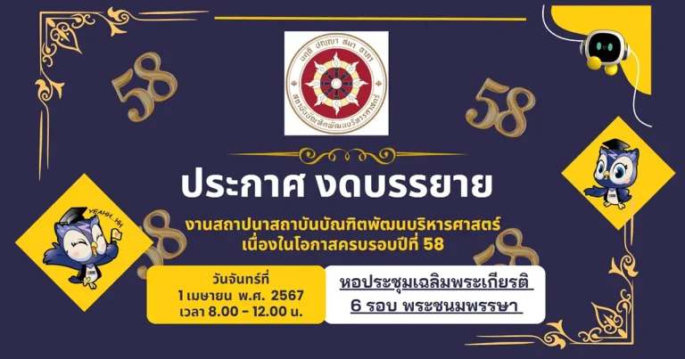 กิจกรรมและบริการ สถาบันงดการบรรยาย วันจันทร์ที่ 1 เมษายน 2567 เวลา 08.00-12.00 น.25 March 202428 March 2024