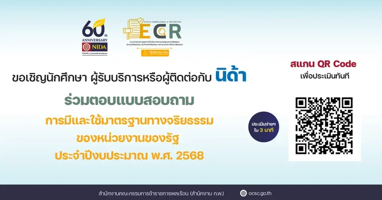 ข่าวสถาบัน เชิญชวนร่วมสะท้อนความคิดเห็นด้านจริยธรรมกับนิด้า ผ่านแบบสอบถาม ECR ปี 256814 October 202522 October 2025