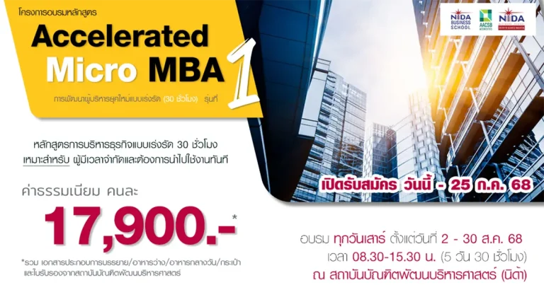 สัมมนาและอบรม โครงการอบรม หลักสูตรการพัฒนาผู้บริหารยุคใหม่แบบเร่งรัด หรือ Accelerated Micro MBA รุ่นที่ 124 June 202524 June 2025