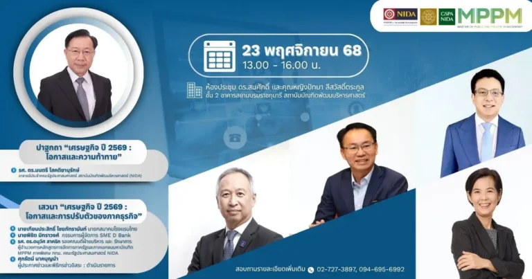 สัมมนาและอบรม ขอเชิญร่วมเข้าฟัง [ฟรี ไม่มีค่าใช้จ่าย] ปาฐกถา หัวข้อ “เศรษฐกิจ ปี 2569 : โอกาสและความท้าทาย”18 November 202518 November 2025