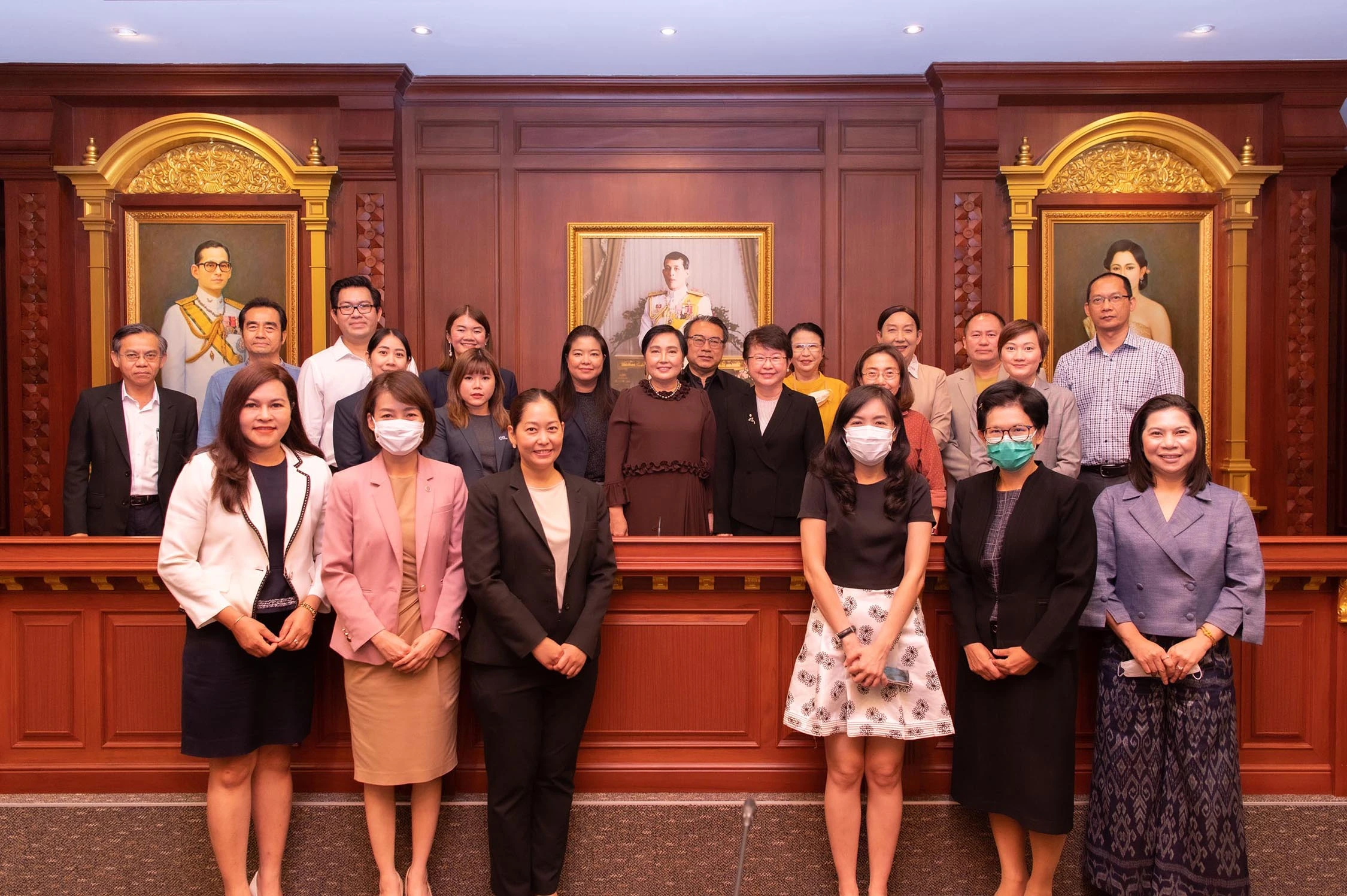 วันที่ 14 มีนาคม 2566 ศาสตราจารย์ ดร.ทิพวรรณ หล่อสุวรรณรัตน์ (อธิการบดี), ศาสตราจารย์ ดร.วิสาขา ภู่จินดา (รองอธิการบดีฝ่ายวิจัยและบริการวิชาการ), รองศาสตราจารย์ ดร.สมบัติ กุสุมาวลี (รองอธิการบดีฝ่ายวิชาการและกิจการนานาชาติ), รองศาสตราจารย์ ดร.อมรรัตน์ อภินันท์มหกุล (รองอธิการบดีฝ่ายวางแผนและชุมชนสัมพันธ์), รองศาสตราจารย์ ดร.พัทรียา หลักเพ็ชร (ผู้อำนวยการสำนักวิจัย), ผู้ช่วยศาสตราจารย์ ดร.ประพิน นุชเปี่ยม (รองผู้อำนวยการสำนักวิจัย), พร้อมทั้งคณาจารย์ และบุคลากรสำนักวิจัย ให้การต้อนรับ หน่วยบริหารและจัดการทุนด้านการพัฒนากำลังคน และทุนด้านการพัฒนาสถาบันอุดมศึกษา การวิจัยและการสร้างนวัตกรรม (บพค.) ประกอบด้วย ศาสตราจารย์ ดร.สมปอง คล้ายหนองสรวง (ผู้อำนวยการ บพค.), ผู้ช่วยศาสตราจารย์ ดร.วรจิตต์ เศรษฐพรรค์ (รองผู้อำนวยการ บพค.), ผู้ช่วยศาสตราจารย์ ดร.ศิรินันท์ กุลชาติ (รองผู้อำนวยการ บพค.), ผู้ช่วยศาสตราจารย์ ดร.ปริปก พิศสุวรรณ (ผู้ทรงคุณวุฒิ มหาวิทยาลัยเทคโนโลยีพระจอมเกล้าธนบุรี) และบุคลากร