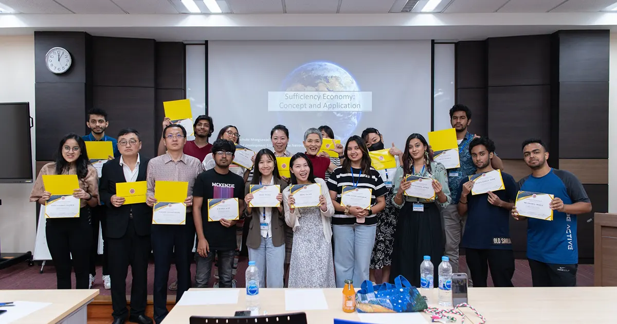 เมื่อวันที่ 20 กรกฎาคม 2566 รองศาสตราจารย์ ดร.ประสพโชค มั่งสวัสดิ์ อาจารย์ประจำคณะพัฒนาเศรษฐกิจ ได้ให้เกียรติมาบรรยายในหัวข้อ “ปรัชญาเศรษฐกิจพอเพียง” ในภาคเช้า และ รองศาสตราจารย์ ดร.วิชัย อุตสาหจิต ผู้อำนวยการหลักสูตรปรัชญาดุษฎีบัณฑิต สาขาวิชาการพัฒนาทรัพยากรมนุษย์และองค์การ (หลักสูตรนานาชาติ) คณะพัฒนาทรัพยากรมนุษย์ ได้บรรยายในหัวข้อ “คุณภาพภาวะผู้นำ Leadership Qualities and How to Develop” ในช่วงบ่าย โดยโครงการ “NIDA 9th International Summer Camp” ครั้งที่ 9 ในหัวข้อ “Creative Tourism and Global Leadership for Sustainability” ซึ่งจัดโดยส่วนวิเทศสัมพันธ์ กองวิเทศสัมพันธ์และสื่อสารองค์การนั้น มีวัตถุประสงค์หรือเป้าหมายเพื่อให้ผู้เข้าร่วมโครงการซึ่งเป็นชาวต่างชาติทั้ง 17 ท่าน ได้ศึกษาและมีความรู้ความเข้าใจในศาสตร์หรือองค์ความรู้ต่างๆ ที่จะเป็นประโยชน์และสามารถนำไปปรับใช้ในการดำเนินชีวิตได้อย่างเหมาะสมต่อไป