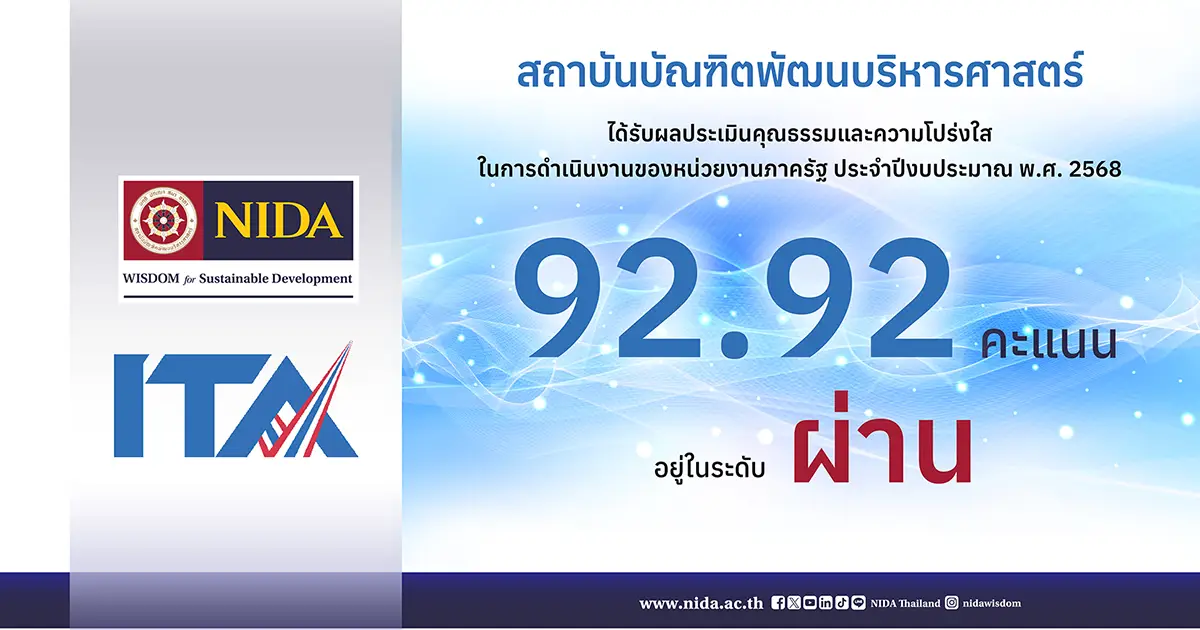 สถาบันบัณฑิตพัฒนบริหารศาสตร์ ได้รับผลประเมินคุณธรรมและความโปร่งใสในการดำเนินงานของหน่วยงานภาครัฐ ประจำปีงบประมามาณ พ.ศ. 2568