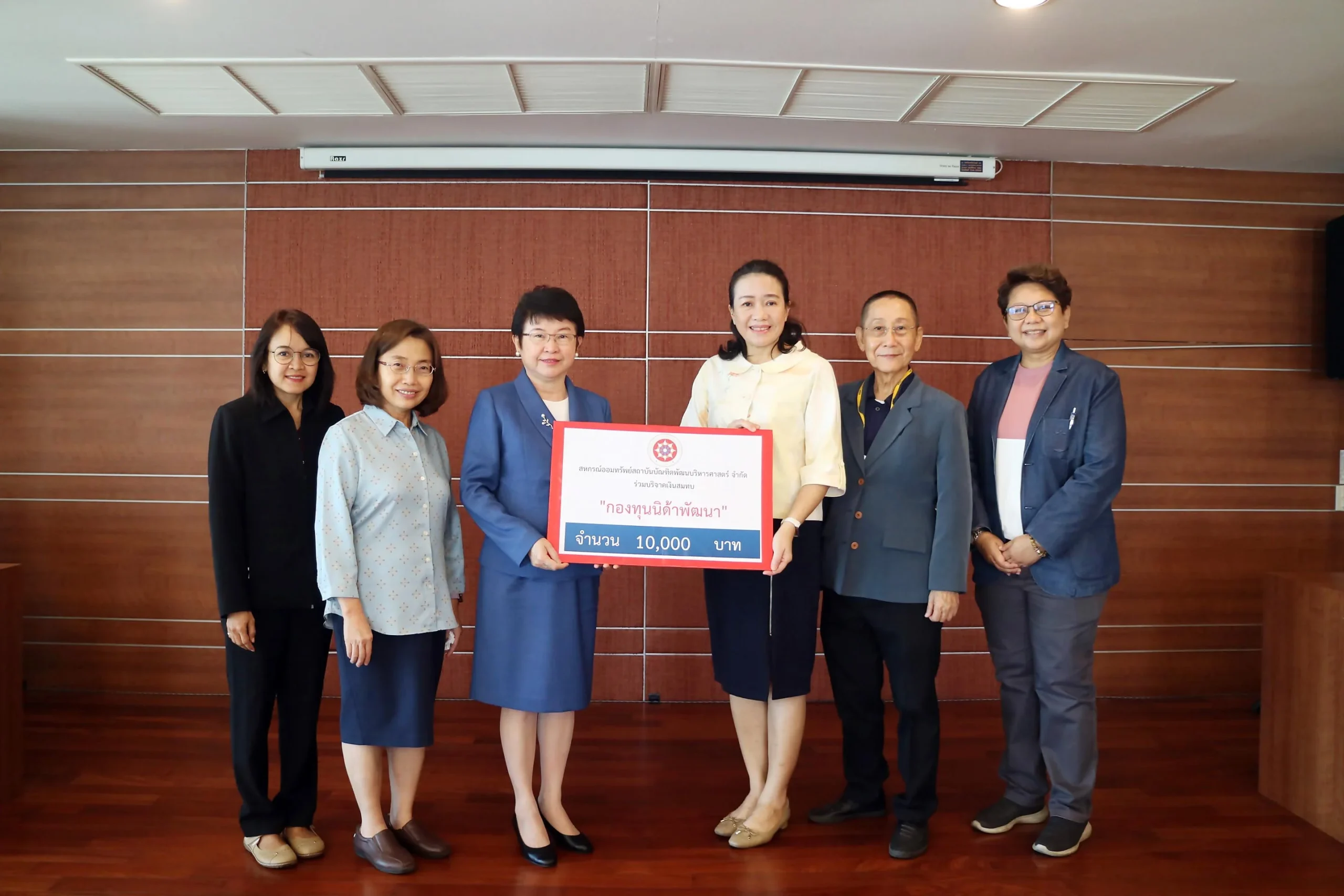 วันที่ 18 มกราคม 2566 สหกรณ์ออมทรัพย์สถาบันบัณฑิตพัฒนบริหารศาสตร์ จำกัด นำโดย รองศาสตราจารย์ ดร. ณดา จันทร์สม ประธานกรรมการฯ พร้อมด้วยกรรมการ และผู้จัดการสหกรณ์ออมทรัพย์ สพบ. จำกัด เข้าพบ ศาสตราจารย์ ดร. ทิพวรรณ หล่อสุวรรณรัตน์ อธิการบดี เพื่อมอบเงินสมทบเข้า ‘กองทุนนิด้าพัฒนา’ จำนวน 10,000 บาท โดย กองทุนนิด้าพัฒนา ได้จัดตั้งขึ้นโดยมีวัตถุประสงค์เพื่อระดมทุนสนับสนุนการพัฒนาสถาบันในด้านต่าง ๆ สู่การเป็นสถาบันอุดมศึกษาในระดับสากลต่อไป