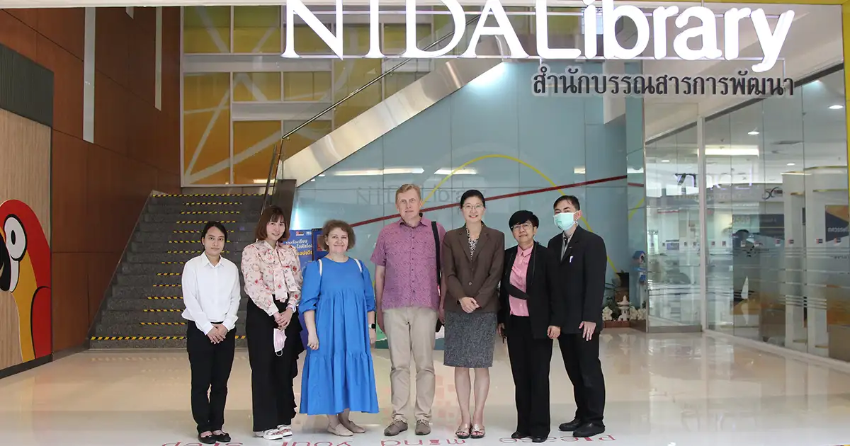 วันที่ 16 พฤษภาคม 2566 ผู้ช่วยศาสตราจารย์ ดร. อารี มโนสุทธิกิจ ผู้ช่วยอธิการบดีฝ่ายกิจการนานาชาติ นางสาวนิภา ชุมสุข รักษาการแทนผู้อำนวยการกองวิเทศสัมพันธ์และสื่อสารองค์การ และนายภาณุ บุญมา นักวิเทศสัมพันธ์ ส่วนวิเทศสัมพันธ์ กองวิเทศสัมพันธ์และสื่อสารองค์การ ให้การต้อนรับ Associate Professor Oleg Smeshko – Rector และ Ms. Rumyansteva Anna Yuryevna – Vice Rector for Research and International Affairs จาก Saint Petersburg university of Management Technologies and Economies (UMTE) สหพันธรัฐรัสเซีย และนางสาวปัญชลี เรืองสมุทร บรรณารักษ์ ได้นำเยี่ยมชมห้องสมุดสุขุมนวพันธ์ และห้องสมุดอาเซียน ถนัด คอมันตร์ด้วย