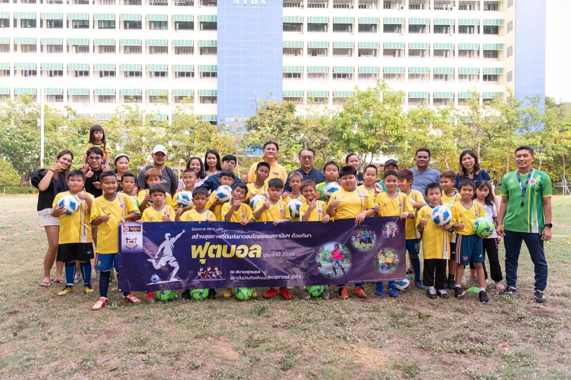 ส่วนสื่อสารองค์การ กองวิเทศสัมพันธ์ สถาบันบัณฑิตพัฒนบริหารศาสตร์ (นิด้า) จัดกิจกรรมสร้างเสริมสุขภาพให้เยาวชนด้วยกีฬาฟุตบอล ประจำปี 2566 ภายใต้โครงการ NIDA USR