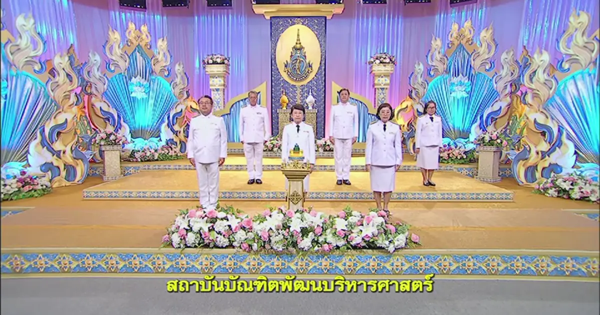 ศาสตราจารย์ ดร.ทิพวรรณ หล่อสุวรรณรัตน์ อธิการบดีสถาบันบัณฑิตพัฒนบริหาร (NIDA) พร้อมด้วยกรรมการสภาสถาบัน คณะผู้บริหารสถาบัน และผู้บริหารหน่วยงาน ร่วมบันทึกเทปถวายพระพรชัยมงคลเนื่องในโอกาสมหามงคลเฉลิมพระชนมพรรษา ๙๑ พรรษา สมเด็จพระนางเจ้าสิริกิติ์ พระบรมราชินีนาถ พระบรมราชชนนีพันปีหลวง (๑๒ สิงหาคม ๒๕๖๖) เพื่อเทิดพระเกียรติและแสดงออกซึ่งความจงรักภักดีต่อสถาบันพระมหากษัตริย์ ณ สถานีโทรทัศน์ ช่อง ๙ MCOT HD ถ.พระราม ๙ กรุงเทพฯ