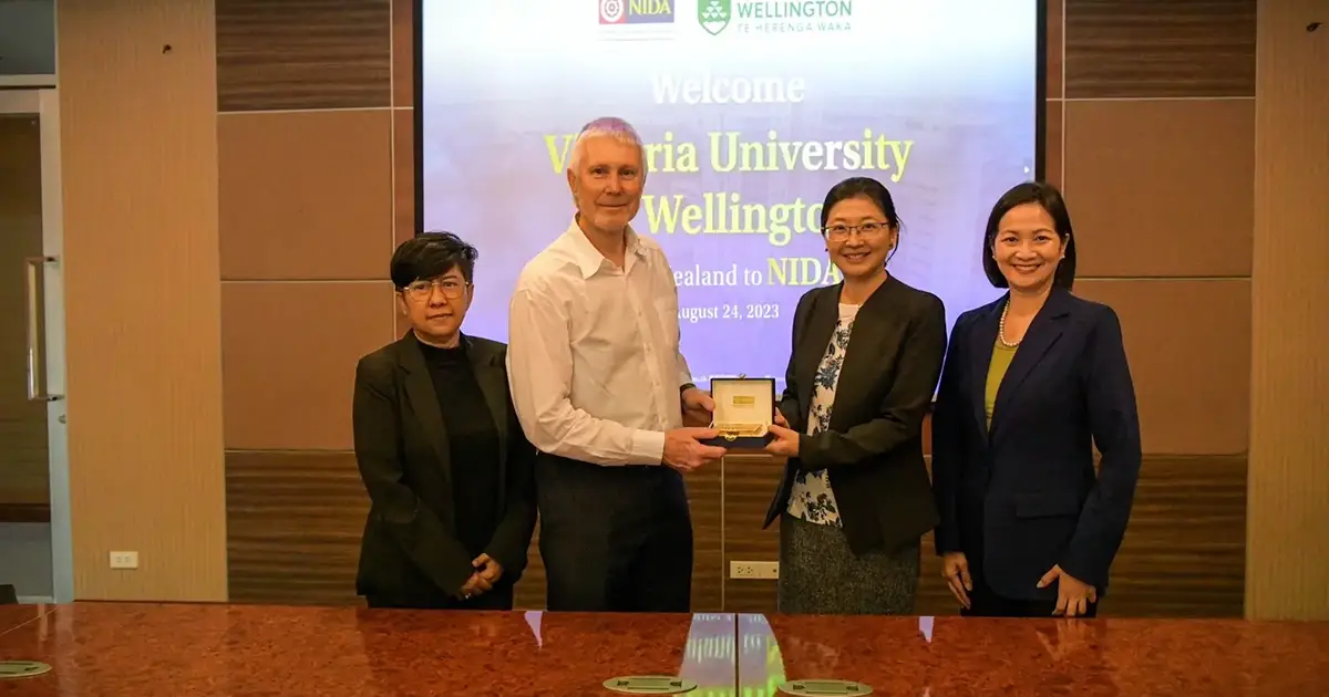 เมื่อวันที่ 24 สิงหาคม 2566 ผู้ช่วยศาสตราจารย์ ดร.อารี มโนสุทธิกิจ ผู้ช่วยอธิการบดีฝ่ายกิจการนานาชาติ รองศาสตราจารย์ ดร. จันทรานุช มหากาญจนะ ผู้ช่วยอธิการบดีฝ่ายกิจการนักศึกษาและศิษย์เก่าสัมพันธ์ คุณนิภา ชุมสุข ผู้อำนวยการกองวิเทศสัมพันธ์และสื่อสารองค์การ และคุณพัชราพร ศรีสวัสดิ์ นักวิเทศสัมพันธ์ ส่วนวิเทศสัมพันธ์ ให้การต้อนรับและหารือความร่วมมือทางวิชาการกับ Mr. Roger Armstrong, Senior Regional Manager, International Office ผู้แทนจาก Victoria University of Wellington (VUW) ประเทศนิวซีแลนด์ ณ ห้องประชุม 802 ชั้น 8 อาคารนราธิปพงศ์ประพันธ์ โดยมีเนื้อหาการหารือเกี่ยวกับการสร้างกิจกรรมความร่วมมือทางวิชาการด้านต่างๆในสาขา Teaching English to Speakers of Other Languages (TESOL) และภาษาศาสตร์ประยุกต์ เช่นกิจกรรมการแลกเปลี่ยนนักศึกษาและคณาจารย์ การร่วมสอนวิชาสัมมนา รวมทั้งพูดคุยถึงความเป็นไปได้ในการสร้างกิจกรรมความร่วมมือทางวิชาการในสาขาการจัดการภาครัฐ (Public Management) และสาขานโยบายสาธารณะ (Public Policy)