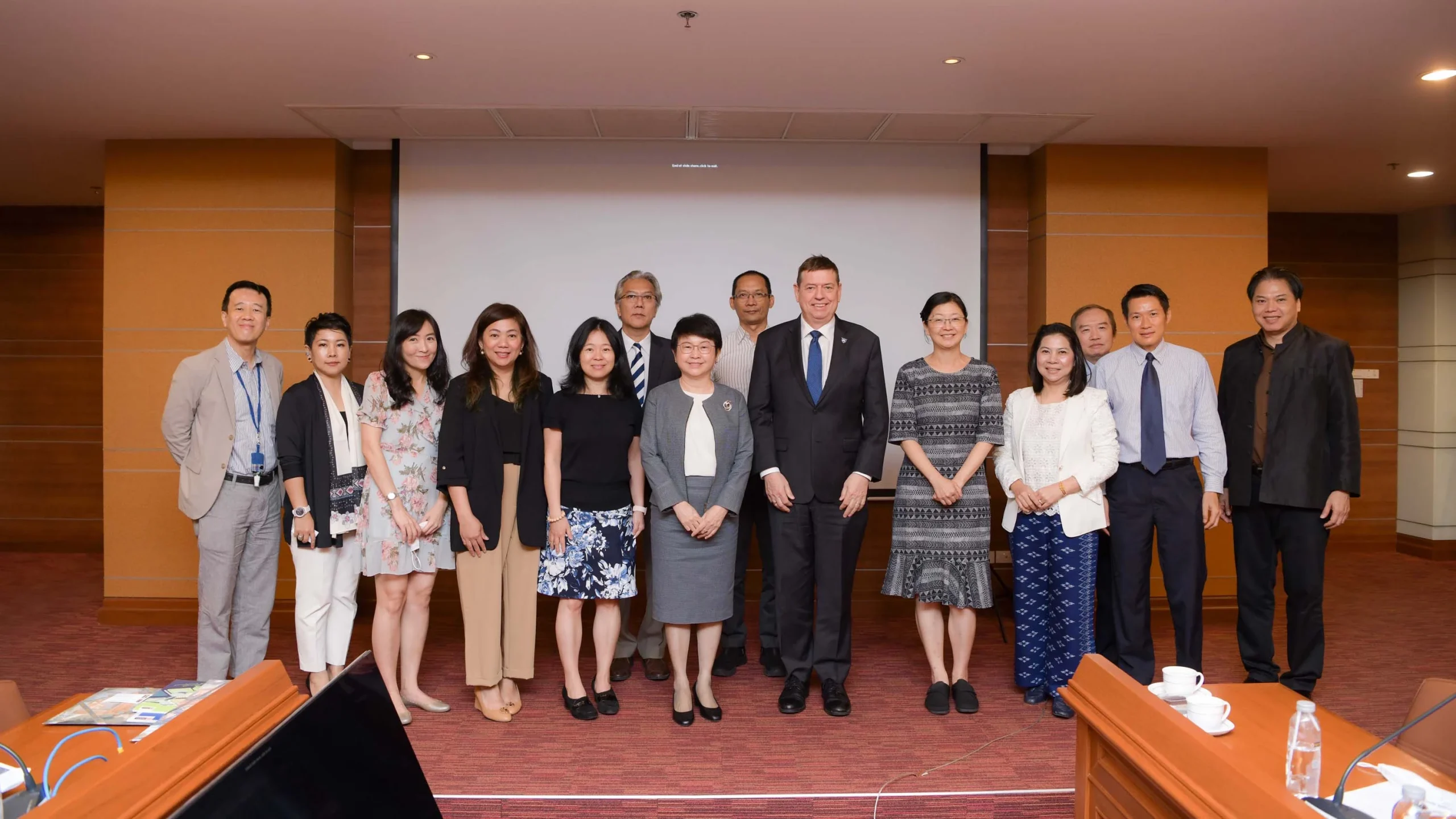 เมื่อวันที่ 17 มีนาคม 2566 ศ.ดร.ทิพวรรณ หล่อสุวรรณรัตน์ อธิการบดี ผศ.ดร.อารี มโนสุทธิกิจ ผู้ช่วยอธิการบดีฝ่ายกิจการนานาชาติ ผศ.ดร.ปราโมทย์ ลือนาม คณบดี คณะสถิติประยุกต์ รศ.ดร. ปราโมทย์ กั่วเจริญ ผู้อำนวยการหลักสูตรสาขาคอมพิวเตอร์ คณะสถิติประยุกต์ รศ.ดร.อนุกัลยณ์ จีระลักษณะกุล รองคณบดีฝ่ายวิชาการ คณะบริหารธุรกิจ รศ.ดร.พรพรรณ ประจักษ์เนตร รองคณบดีฝ่ายวิชาการ คณะนิเทศศาสตร์และนวัตกรรมการจัดการ รศ.ดร.จุฑารัตน์ ชมพันธุ์ รองคณบดีฝ่ายวิชาการ คณะบริหารการพัฒนาสิ่งแวดล้อม รศ.ดร.อรนุช พฤติพิบูลย์ธรรม รองคณบดีฝ่ายบริหาร คณะพัฒนาทรัพยากรมนุษย์ รศ.ดร.จุฑามาศ แก้วพิจิตร รองคณบดีฝ่ายวิจัย บริการวิชาการ และพัฒนาเครือข่าย คณะพัฒนาทรัพยากรมนุษย์ ให้การต้อนรับ Dr. Roger Blindly, Vice Provost Global, Dr. Anna Marshall Assistant Director for Asia Partnership Dr. Kamthorn Sheepchaiisara, PSU Alumni และ PSU Alumnus/alumna จาก Pennsylvania State University ประเทศสหรัฐอเมริกา ในการเดินทางเยือนสถาบันบัณฑิตพัฒนบริหารศาสตร์อย่างเป็นทางการ เพื่อหารือกับผู้บริหารสถาบันฯ และผู้บริหารของคณะต่างๆ เกี่ยวกับความร่วมมือทางวิชาการในประเด็น การแลกเปลี่ยนอาจารย์และการแลกเปลี่ยนนักศึกษา รวมถึงการทำวิจัยร่วม เป็นต้น ณ ห้องอินทรภูวศักดิ์ ชั้น 8 อาคารนราธิปพงศ์ประพันธ์ และเลี้ยงรับรองอาหารกลางวัน ณ ห้อง 805 ชั้น 8 อาคารนราธิปพงศ์ประพันธ์