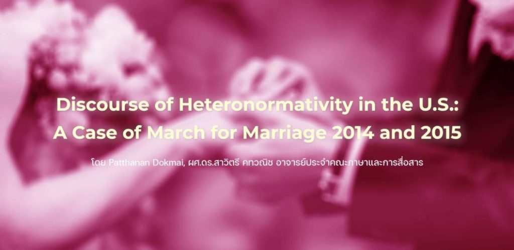 This paper explores heteronormative discourse on the issue of same sex marriage (SSM) legalization in the U.S. The aim is to investigate heteronormative ideology in anti-SSM discourse. Data are eight anti-SSM speeches delivered in the March for Marriage event, held in 2014 and 2015 in the U.S. The speeches are collected from the YouTube channel: NationForMarriage. Regarding the study of van Dijk (2004), discourse of discrimination is one kind of ideological manifestation in the form of text, talk, and communication.