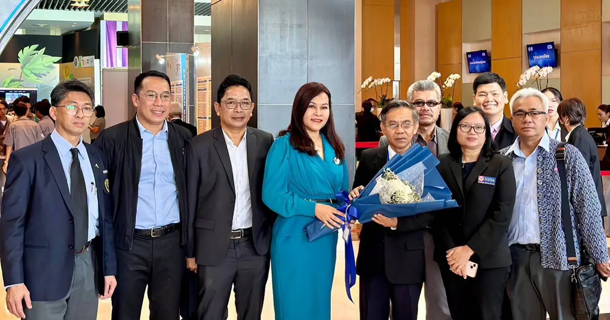 ศาสตราจารย์ ดร.บรรเจิด สิงคะเนติ หัวหน้าโครงการวิจัยเชิงปฏิบัติการ “นวัตกรรมทางสังคมเพื่อสร้างชุมชนเข้มแข็งพื้นฐานของประชาธิปไตยอัตลักษณ์ไทย” ร่วมแถลงนำเสนอโครงการวิจัยฯ ในการนี้ รองศาสตราจารย์ ดร.พัทรียา หลักเพ็ชร ผู้อำนวยการสำนักวิจัย ได้เป็นผู้แทนท่านอธิการบดี กรุณาให้เกียรติมอบช่อดอกไม้แสดงความยินดี เมื่อวันที่ 8 สิงหาคม 2566